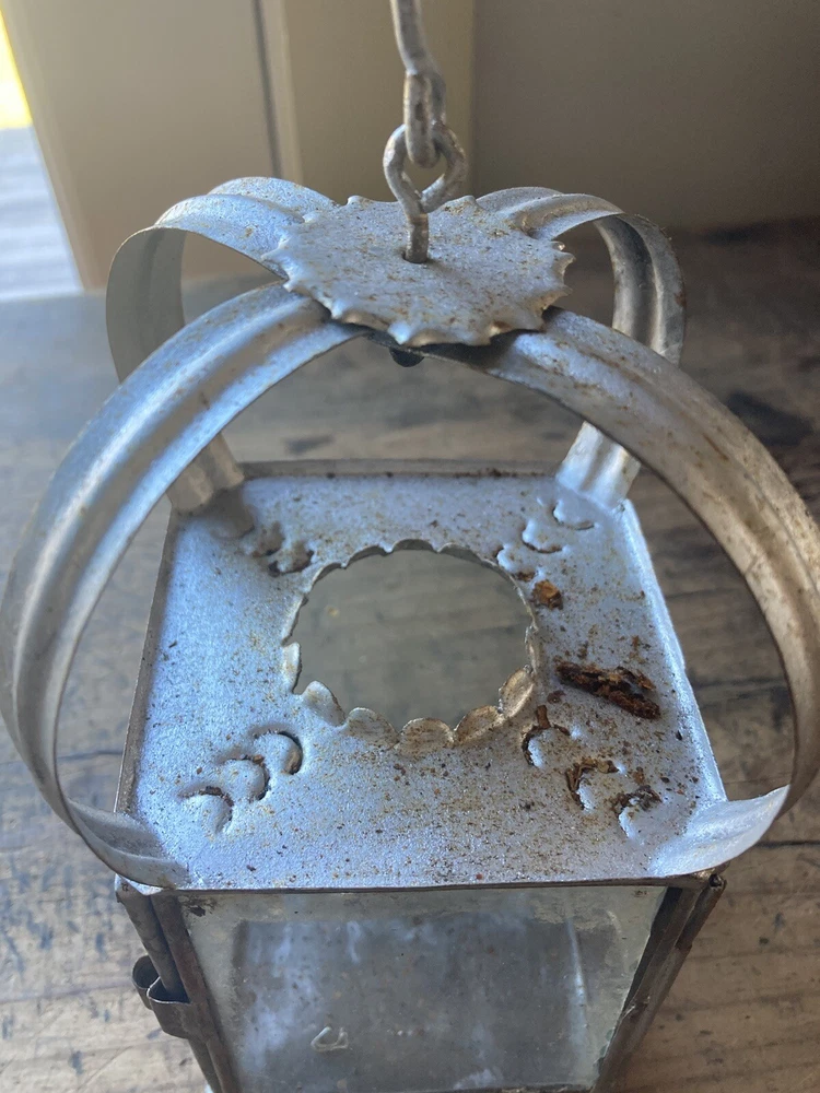 Nice! Antique primitive Early lighting Sheet Iron Tin Lantern solid condition