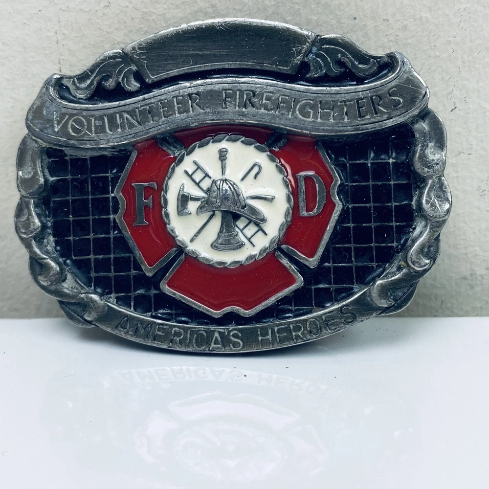 This belt buckle, featuring a design honoring firefighters, is made of metal with a silver or grey finish. It is geared towards men who admire heroes, symbolizing the bravery and dedication of American firefighters. The buckle measures 3 inches and is crafted by Buckles of America, making it a stylish accessory for those who appreciate the sacrifices made by these essential first responders.