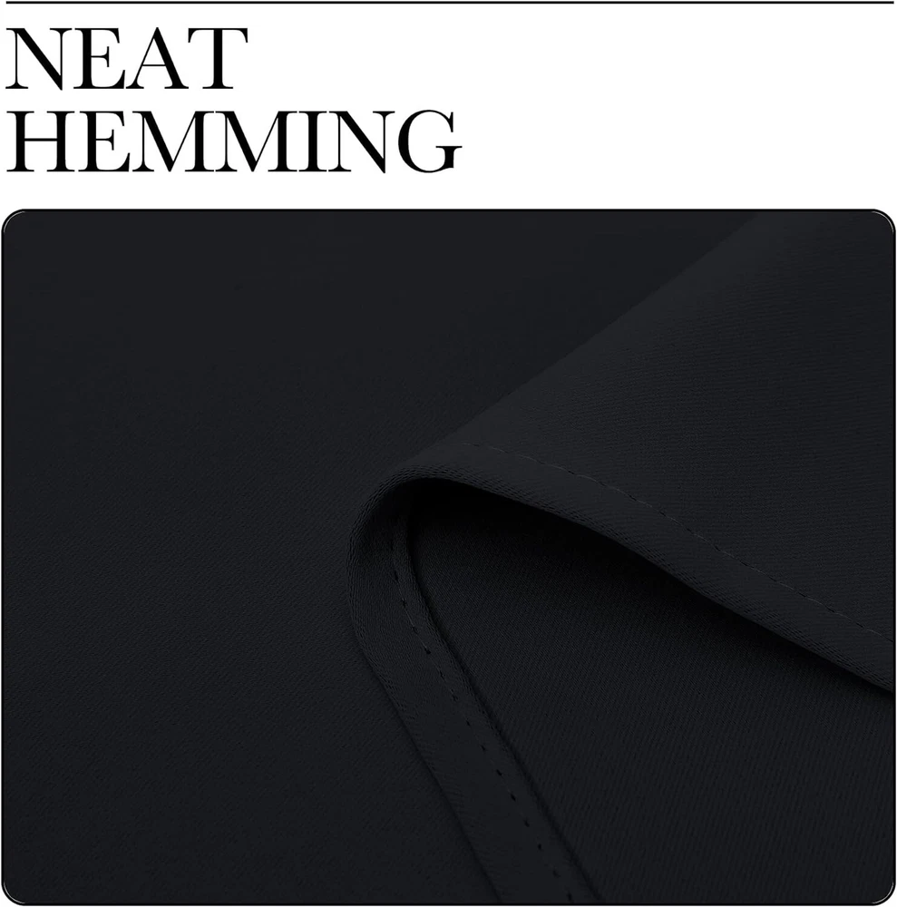 (2 PACK) NICETOWN Halloween Pitch Black Solid Thermal Insulated Grommet Blackout Curtains/Drapes for Bedroom Window (2 Panels, 42 inches Wide by 63 inches Long, Black) - Total: 4 Panels About this item Polyester READY MADE: Includes 4 blackout curtain panels, each 42" W x 63" L. With 6 grommets. Size may vary by 1" due to handmade craftsmanship. Curtain rod not included. Soft and heavy fabric without a liner. SERVE WELL: Blocks 85%-99% of light and UV rays (dark colors work best). Noise-reducing, ideal for better TV viewing with triple weave technology. ENERGY SMART: Insulates against heat and chill, balancing room temperature. Protects furniture and artwork from sun damage. Saves energy over time. GOOD TO GO: Thread-trimmed and wrinkle-free. Fits standard curtain rods (1.6" inner diameter). EASY TO MAINTAIN: Machine washable in cold water, tumble dry. Iron or steam clean as needed. Visit NICETOWN store for more options. B01CS31R94