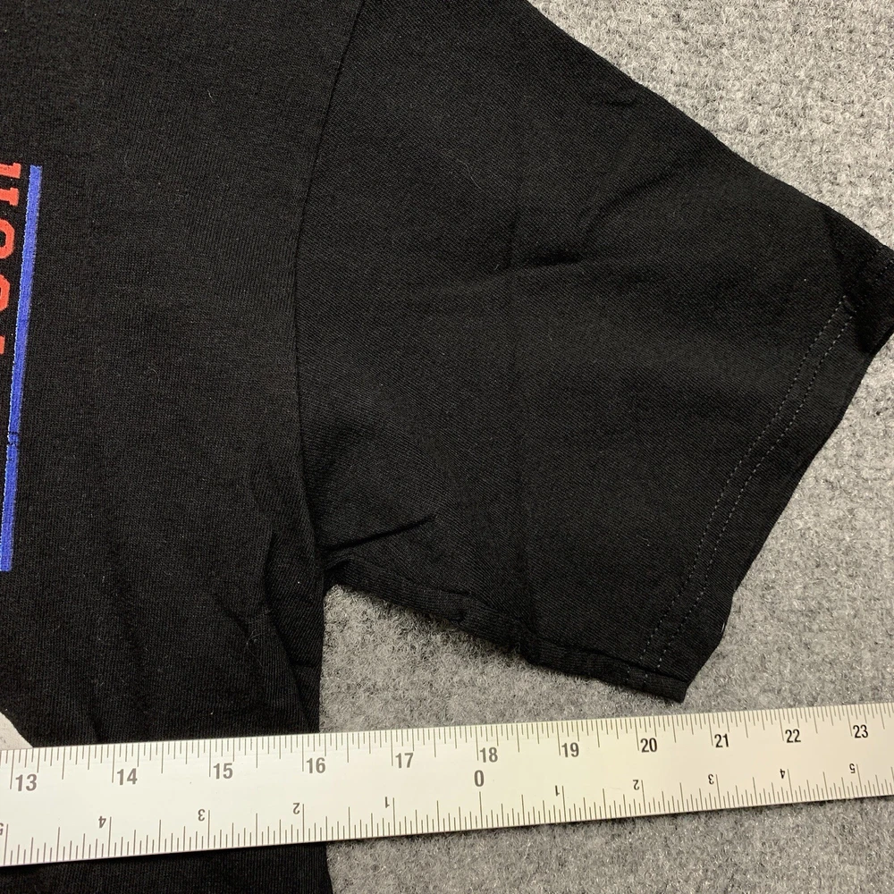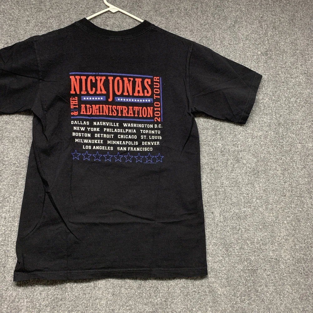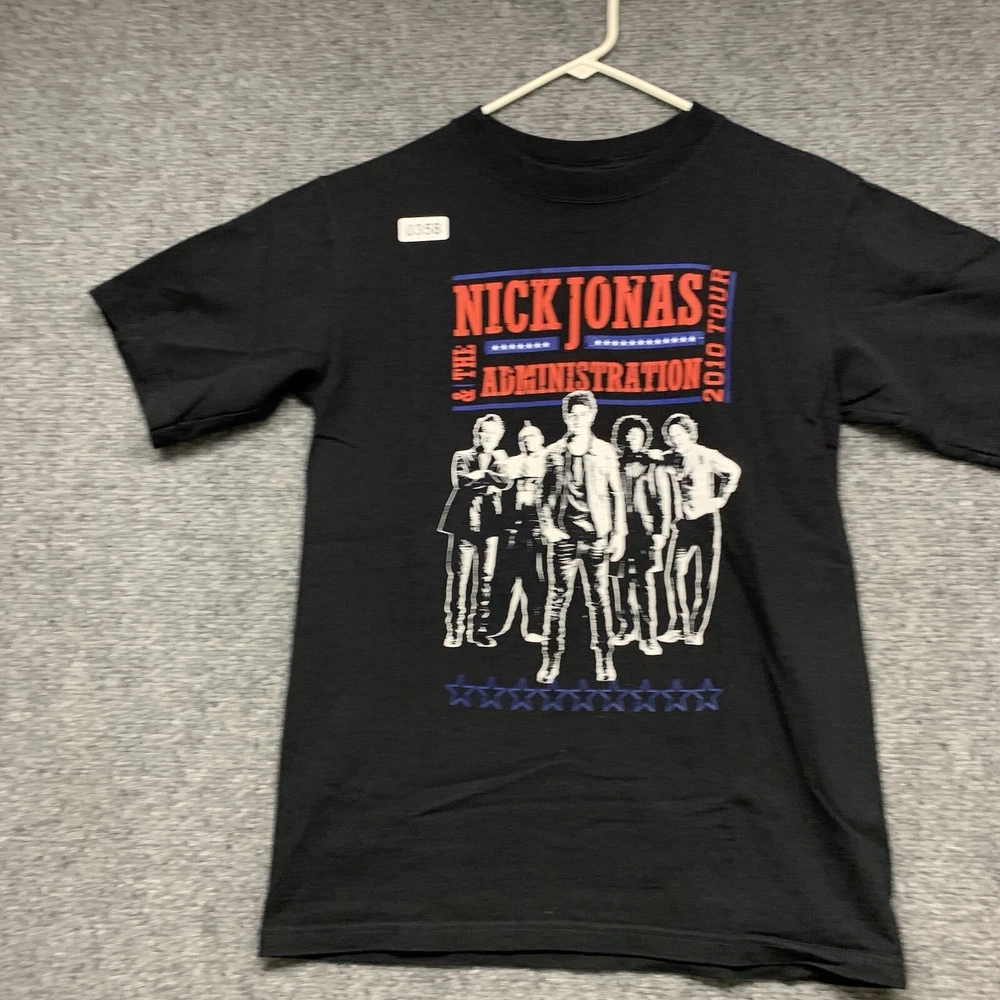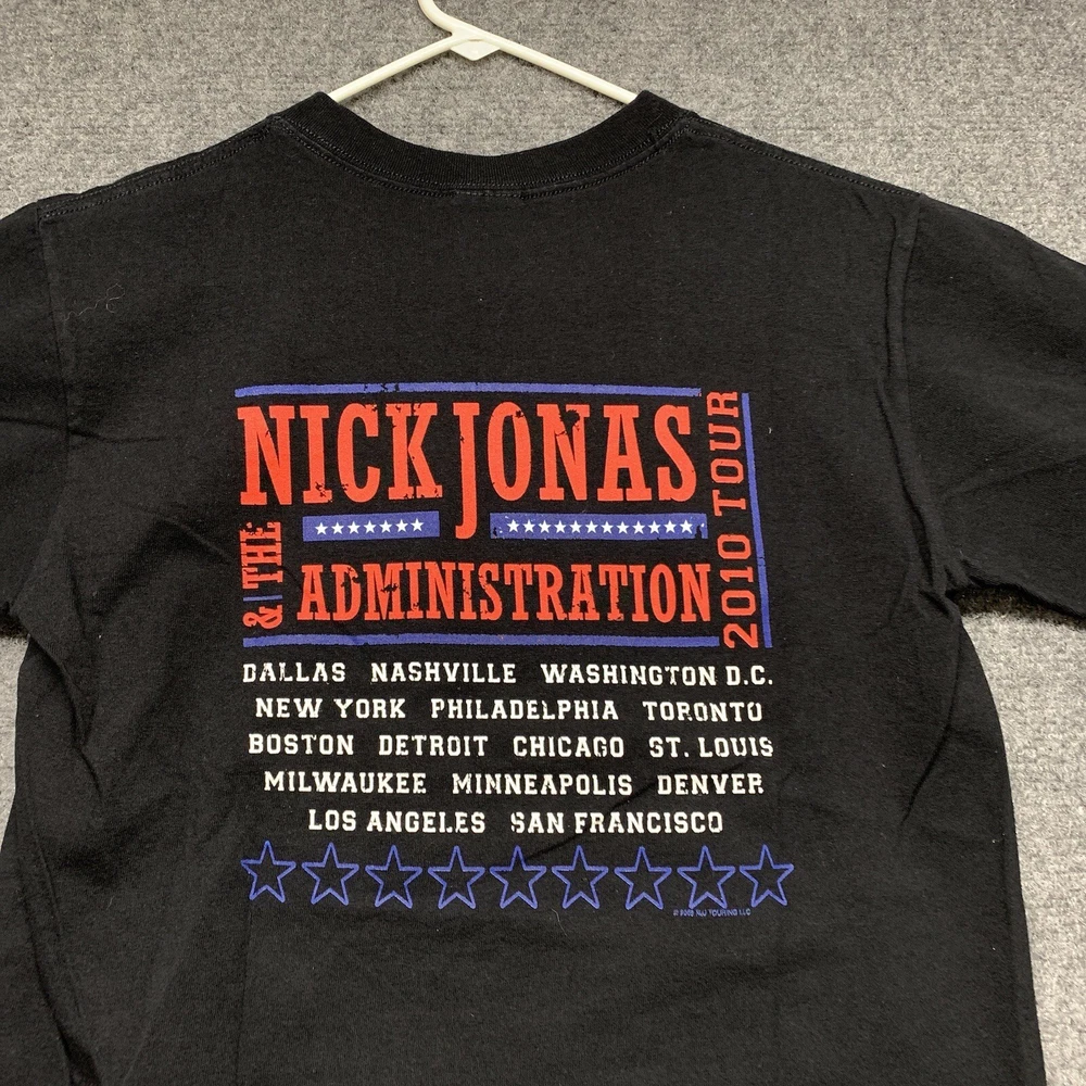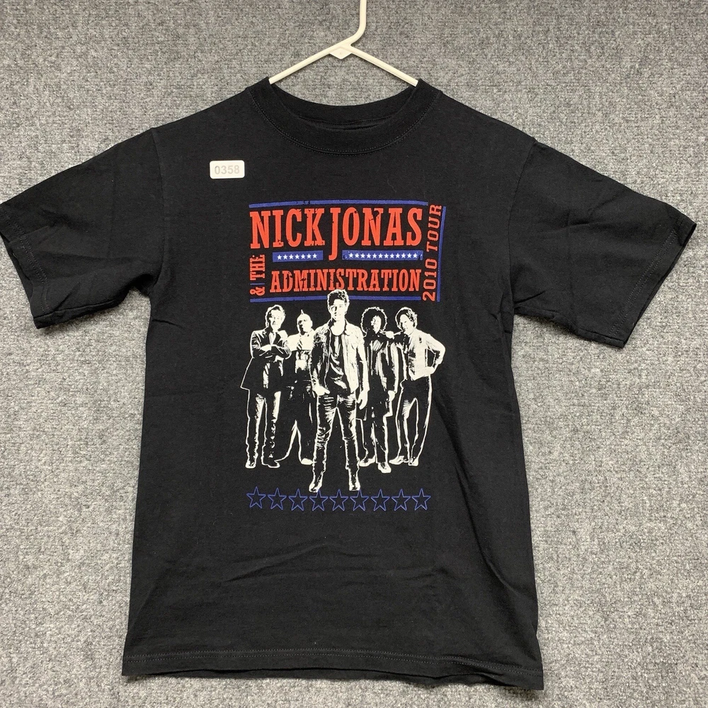 This Nick Jonas T-shirt from the 2010 tour is a must-have for any collector of music memorabilia. The shirt features a solid black color and short sleeves, made from soft and breathable cotton knit fabric. It has a regular fit and is available in adult size small, perfect for any Nick Jonas fan. The vintage T-shirt includes the Anvil brand logo and is suitable for all seasons. The shirt is lightweight and comfortable, making it great for concerts, festivals, or casual wear. It comes with a range of features, including heavyweight material and a classic 90s hip hop band theme.