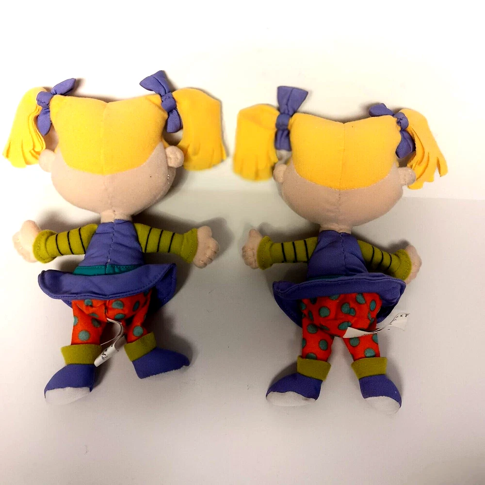 This vintage lot of Rugrats plush toys includes Chuckie Finster, Reptar, Angelica, Tommy Pickles, and more. These small (6-14 in) stuffed animals come in multicolor designs and were manufactured in China by Mattel in 1998. The set is perfect for all occasions and features retired characters from the popular Rugrats franchise. Each plush toy in this lot is in great shape and ready for display or play. Whether you're a collector or just looking for some nostalgic fun, this Rugrats plush collection is sure to delight. Don't miss out on the chance to own these classic stuffed animals. Rugrats Set of Five Plush Chuckie Finster Reptar Angelica Tommy Pickles 1998 VTG Tommy Pickles New with Tag and Tommy Pickles pre-owned Angelica Pickles pre-owned, one has tag that is not attached Chuckie Finster with raptor outfit pre-owned Approximately 9 inches x 6 inches See photographs for condition and measurements Mattel Star Bean Viacom Nickelodeon Good condition Total 5 plush toys 1829KF Vintage
