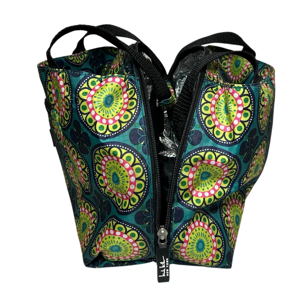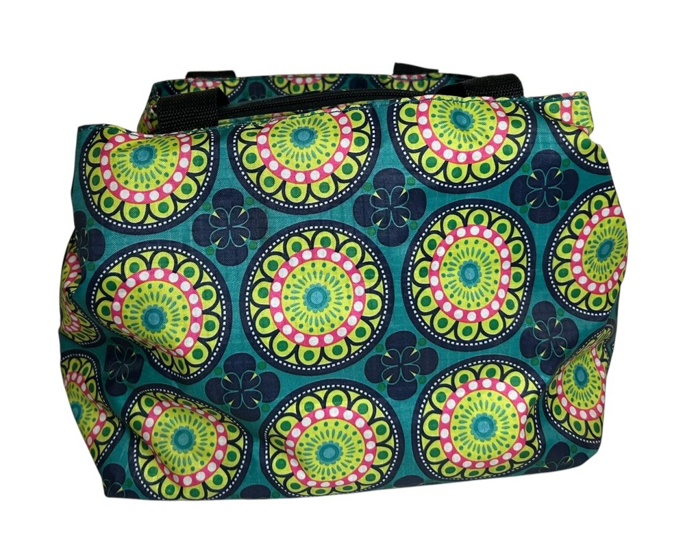 HomeNicole Miller Insulated Lunch Bag Tote Teal Green Pink Medallion Kaleidoscope