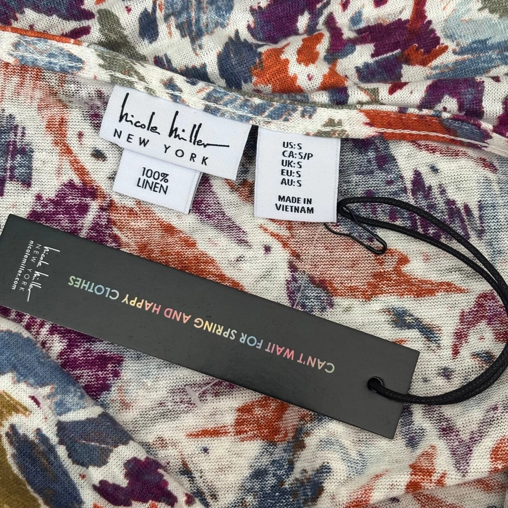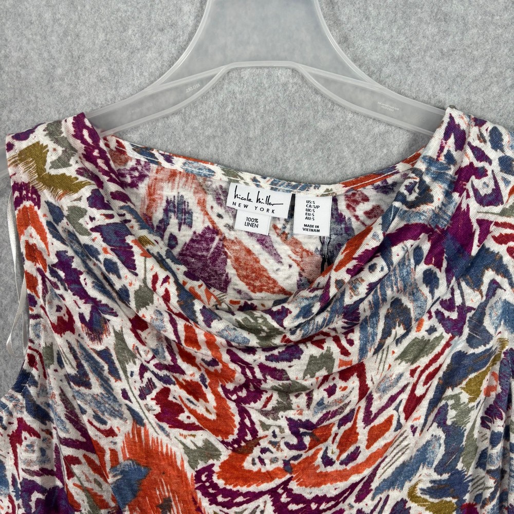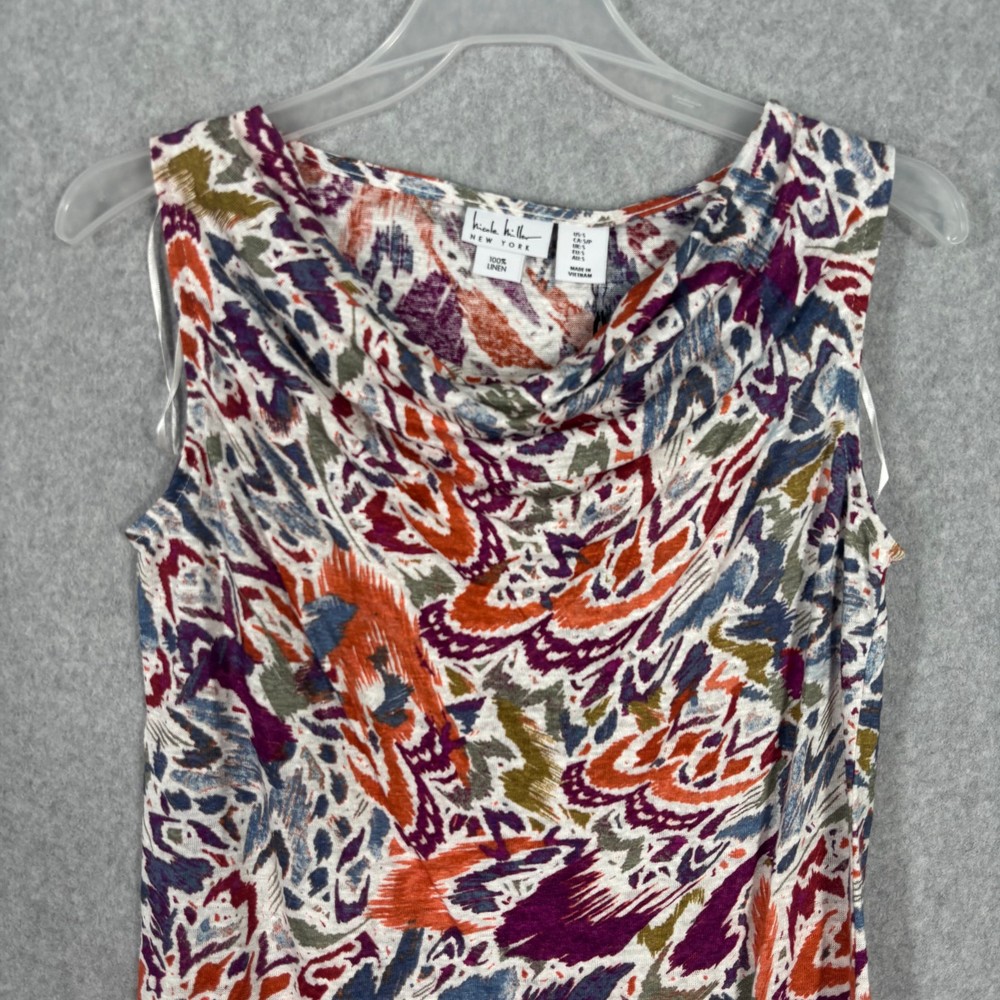 Nicole Miller Top Womens Small Purple Orange White Blue Green Floral Tank Drape Cowl Leaves Corp Career Work Office Business Church Tropical Colorful Sleeveless Jersey Stretch 100% Linen Knit Blouse Jersey Knit New with tag SKU 6312 **Please see all pictures for full item condition, details, and approximate measurements** - Ships Same/Next Day, Professional Seller, Offers Welcome, Like or watch for price drops - Item in photos is exact item you will receive - I list new items daily, be sure to browse my store/closet for more items - Bundle pricing and combined shipping available for additional savings - Feel free to send a message