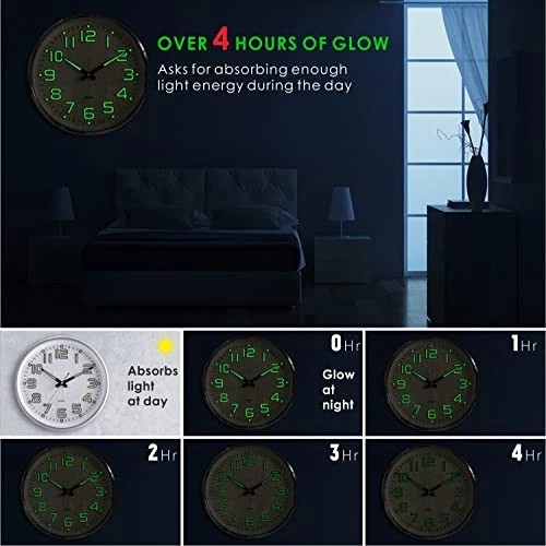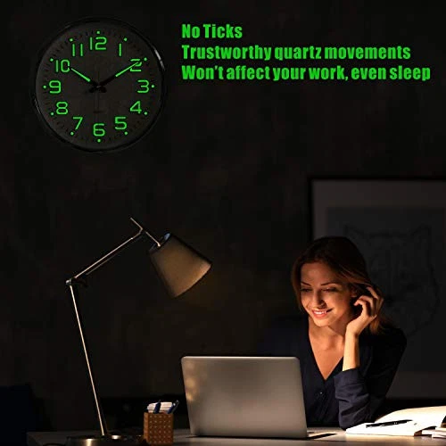 Return Policy Fast Delivery Trusted seller Night Light Wall Clock 13'' Bedroom Wall Clocks with Silent Non-Ticking Glowing Function - Battery Operated Decorative Wall Clock for Home, Kitchen, Living Room (Green Light) Product Description Glowing up Function -- Glowing clock hands and large 3D numbers makes it easier to read at night, especially suitable for the elderly and people with poor eyesight. make it easy to read the time from any corner of your room both day and night. Long Luminous Time -- The numbers and clock hands are all coated with phosphor, Light up about 4 hours if this clock receives enough sunlight at day, then get dimmer as the night wears on. Super Quiet Movement -- Every movement has been strictly tested, Precise quartz clock movement with smooth sweeping second hand, not only keep the time accurate, but also make the movement quiet, no ticking, suitable put it in your bedroom or study without any concern. Wall Clock Battery Operated: Powered by 1 AA battery(Not included). a brand new battery can be used for more than one year. Hooks included with the clock , wide slot in back for easy hanging. About : has been committed to developing home clock for many years. Now we have extensive product lines, better quality product and customer service. In case of any issue or complaints about this clock, please don’t hesitate to contact us. It’s always our persistence and belief to provide high-quality products and satisfactory customer services. Shipping Returns Payment Shipping Shipping is FREE to all addresses other than APO/PO boxes in the lower 48 states. All our stock ships from US-based warehouses. Shipped via USPS or UPS (depending on location and package weight) Unless stated otherwise, all orders will ship within 24-72 hours of your payment being processed. Check our feedback to see the great reviews of FAST shipping we offer. Returns Seller does not accept returns Payment We currently accept payment via eBay managed payments only. Once payment is cleared, we will dispatch your shipment within 1-3 business days. Please refer to the "Shipping" tab for more information regarding shipping speed to your destination.