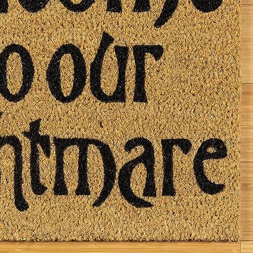 Invite Jack & Sally to greet your guests with this slip-resistant coir door mat, adding a touch of Nightmare Before Christmas to your doorstep. Ideal for fans of all ages, it's not only a practical addition but also a delightful gift option. Let your entryway be a portal to the enchanting world of Disney's Nightmare Before Christmas! COIR DOORMAT: This set includes mats designed for both the front and back doors of your home. These mats are larger in size, making them perfect for both indoor and outdoor usage. Additionally, they come with a non-slip backing for enhanced safety. PRODUCT DETAILS: Contains 2 coir mats, each 20" x 34". Pile Height 0.50”. Product may contain creases upon arrival. Please allow time for creases to flatten and settle. EASY TO CLEAN: Clean by shaking, brushing or vacuuming. If mat becomes very wet or saturated with water, lift the mat to dry thoroughly. OFFICIAL LICENSED PARTNER/MANUFACTURER: We are a leading partner with global children's brands such as Disney, Nickelodeon, Marvel, Smithsonian, and more for making and distributing authentic area and accent rugs that are perfect for kid’s bedrooms, playrooms, day care & classrooms. FAMILY OWNED BUSINESS: G.A. & Sons has been owned by family since it was established in 1896, and it is now directed by the great grandson of the founder. is a leading manufacturer of area and accent rugs.