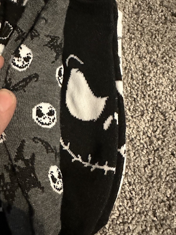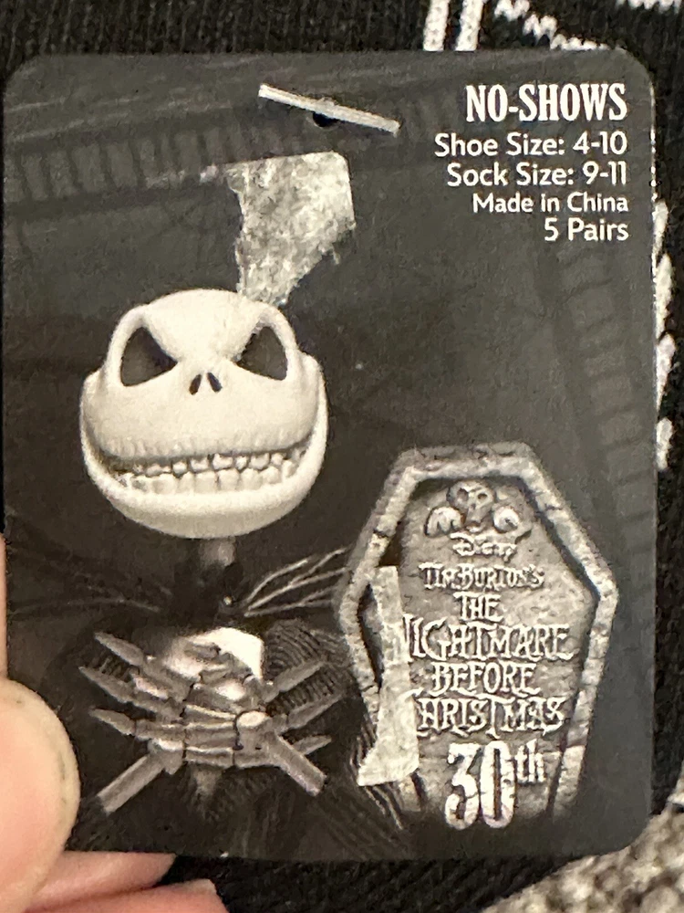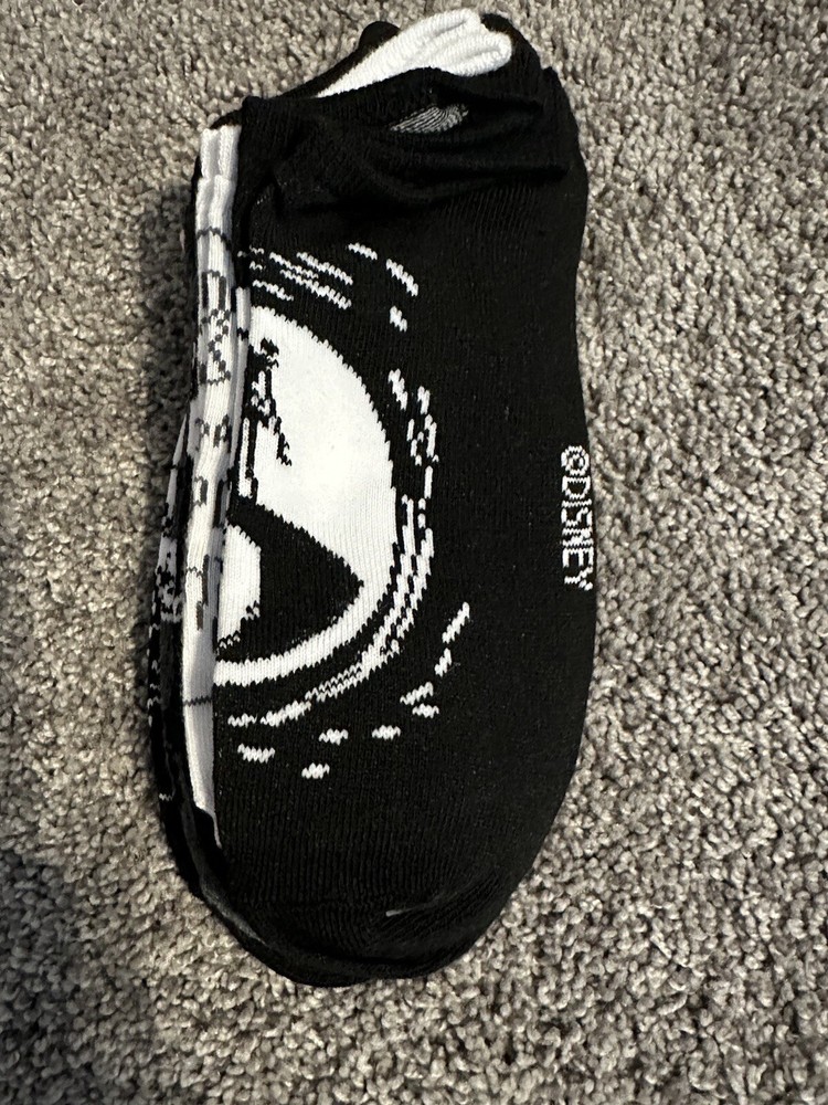 Add a little Disney magic to your sock collection with these Nightmare Before Christmas women's no-show socks. These socks come in a pack of five and feature a black color with a festive Christmas theme. The socks are made of a lightweight blend of polyester and spandex, ensuring both comfort and durability. They are available in size L and have a no-show length, making them perfect for any occasion. The socks also feature a fun geometric pattern and the Disney brand. These socks are ideal for walking and are a must-have for any Disney fan.