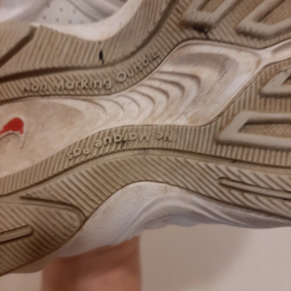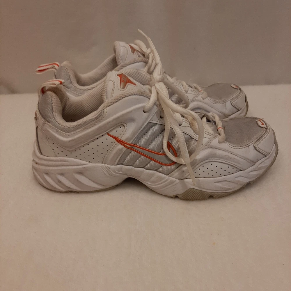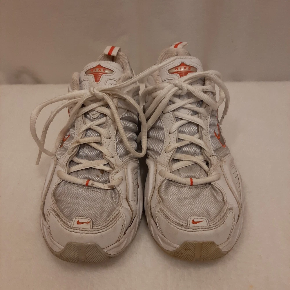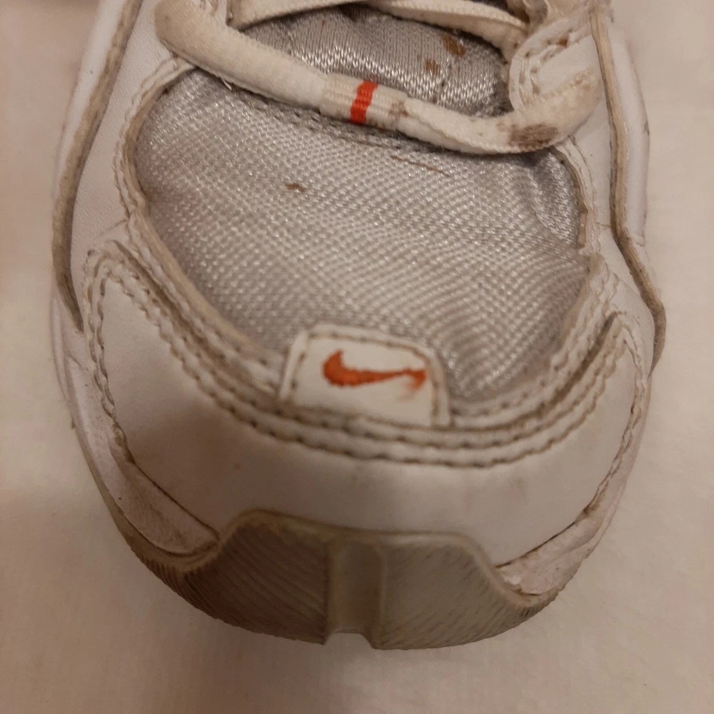 Nike 310184 Women's Shoes Training Running Size 6.5 Peach White Non Marking READ In good pre-owned condition may show signs of wear from use/handling/storage/display. Please view all pics for condition/details/flaws/issues. SOLD AS IS In fair/poor pre-owned condition may show signs of wear from wearing/use/handling/storage/washing please view all photos for details. These shoes have some flaws there are many dirty marks on them please see photos 9-19, There is some separating going on one shoes please see photos 13 & 14, The bottoms look in really great shape not much wear please see photo 6.