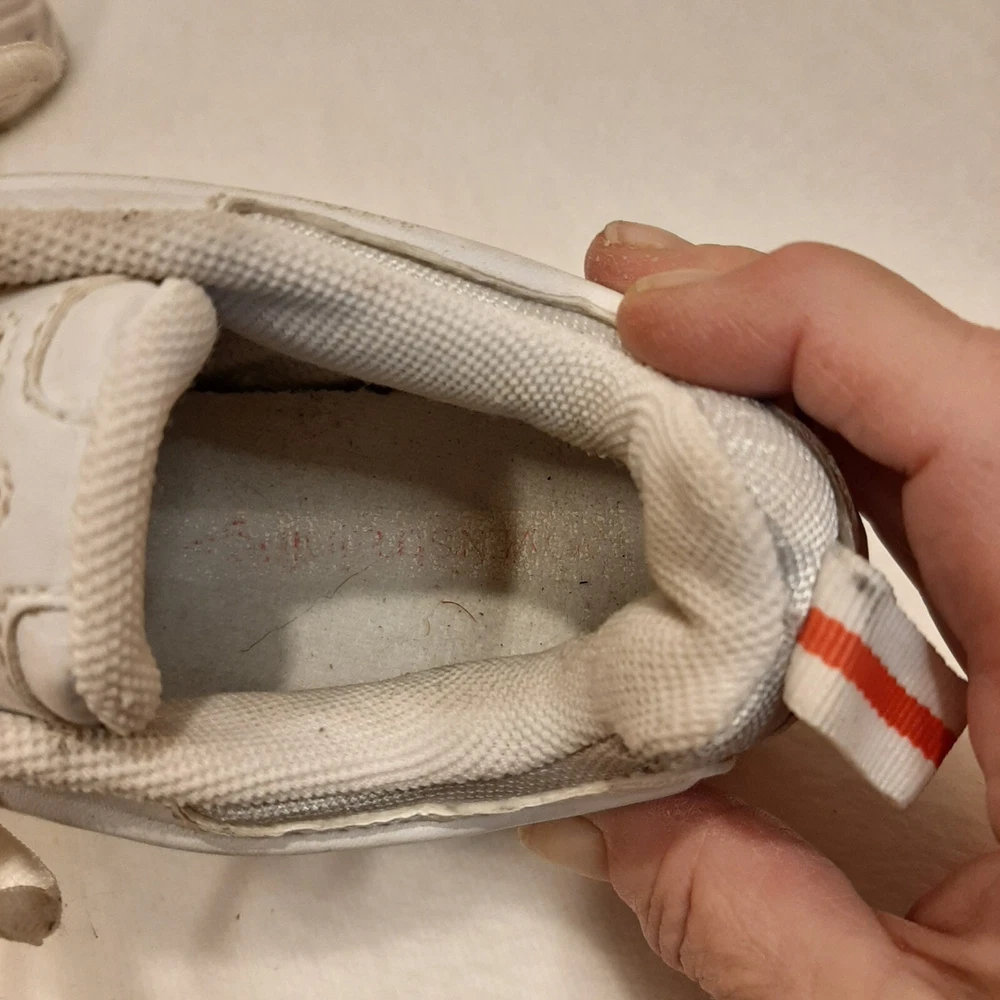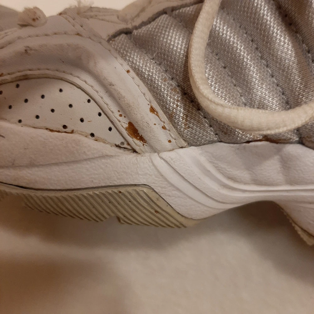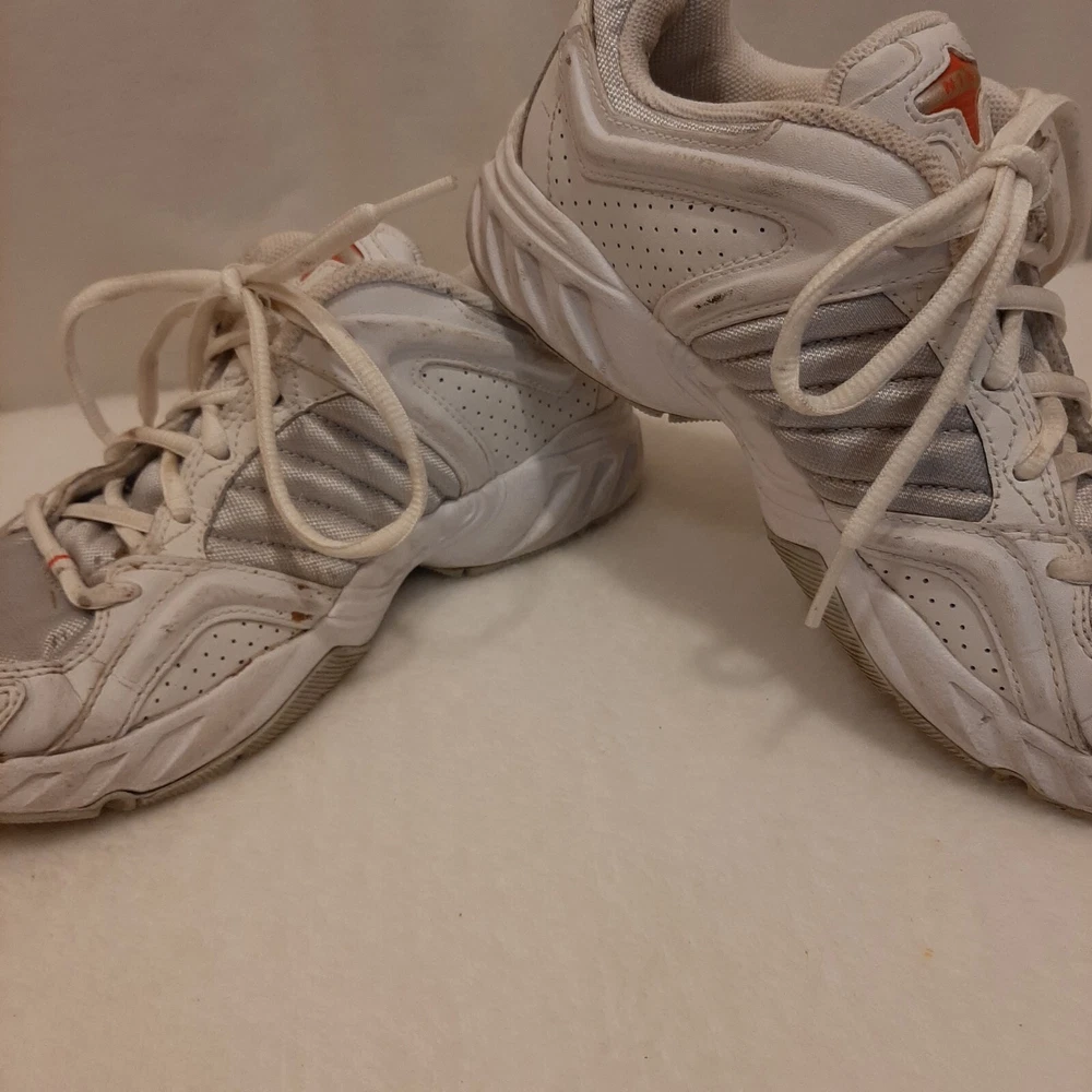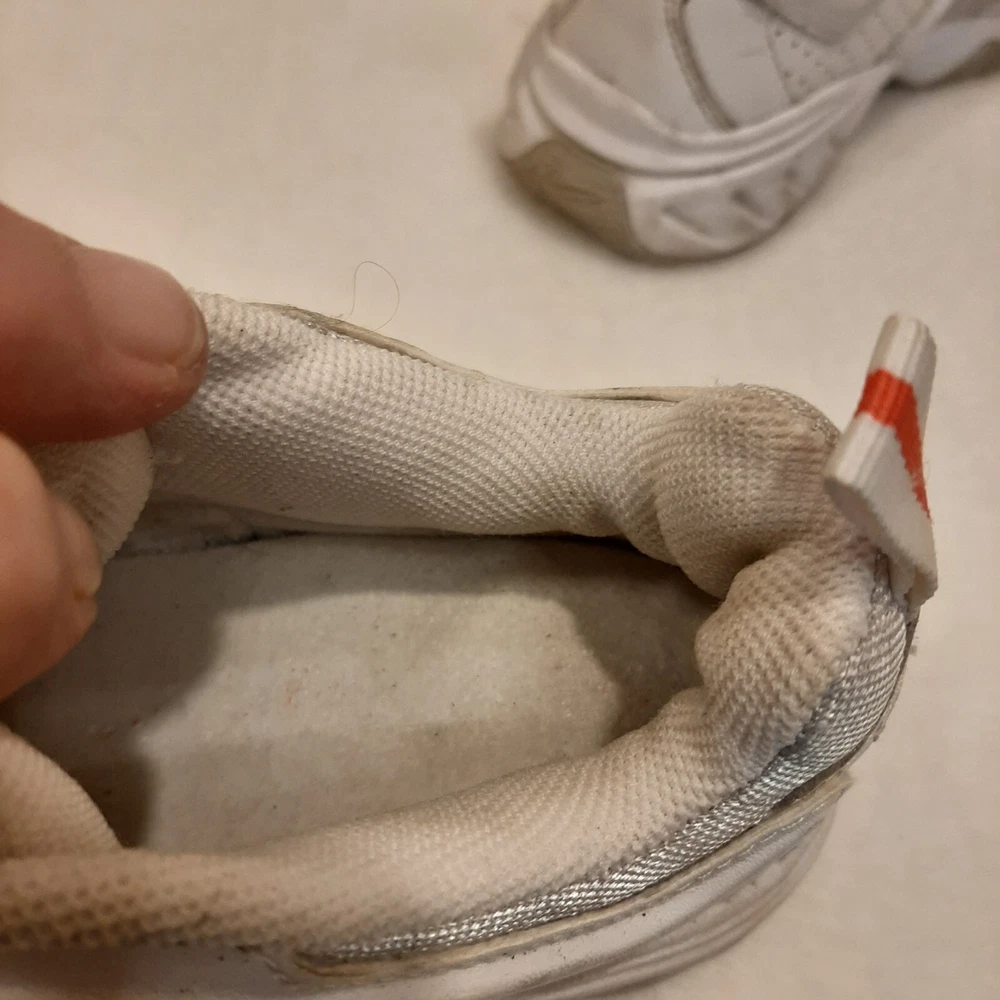 Nike 310184 Women's Shoes Training Running Size 6.5 Peach White Non Marking READ In good pre-owned condition may show signs of wear from use/handling/storage/display. Please view all pics for condition/details/flaws/issues. SOLD AS IS In fair/poor pre-owned condition may show signs of wear from wearing/use/handling/storage/washing please view all photos for details. These shoes have some flaws there are many dirty marks on them please see photos 9-19, There is some separating going on one shoes please see photos 13 & 14, The bottoms look in really great shape not much wear please see photo 6.