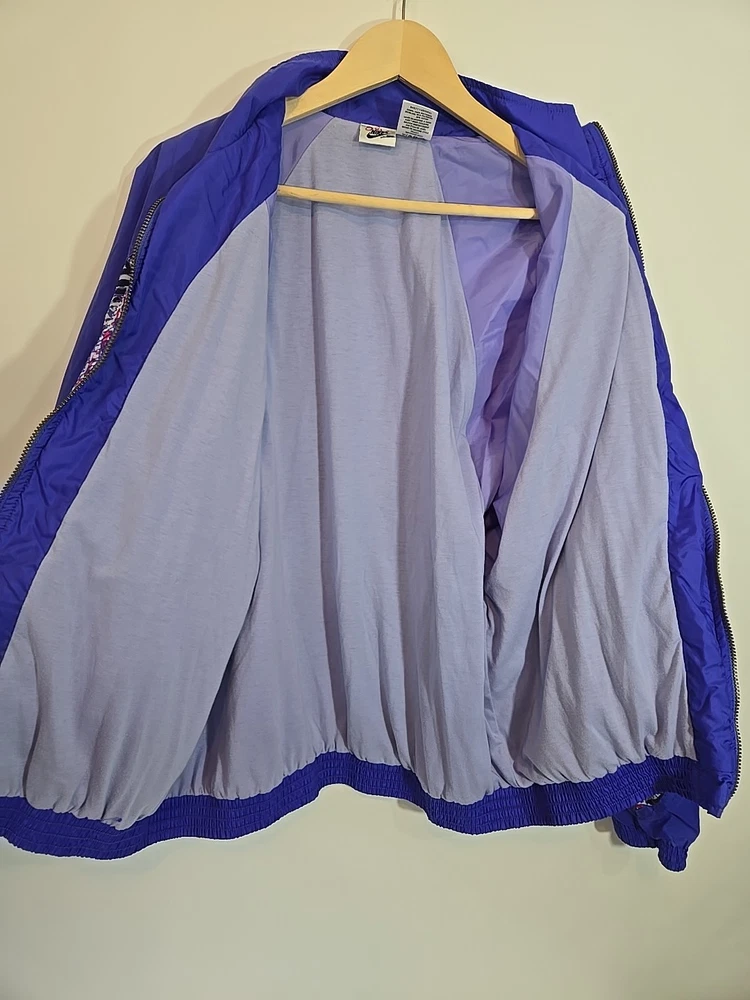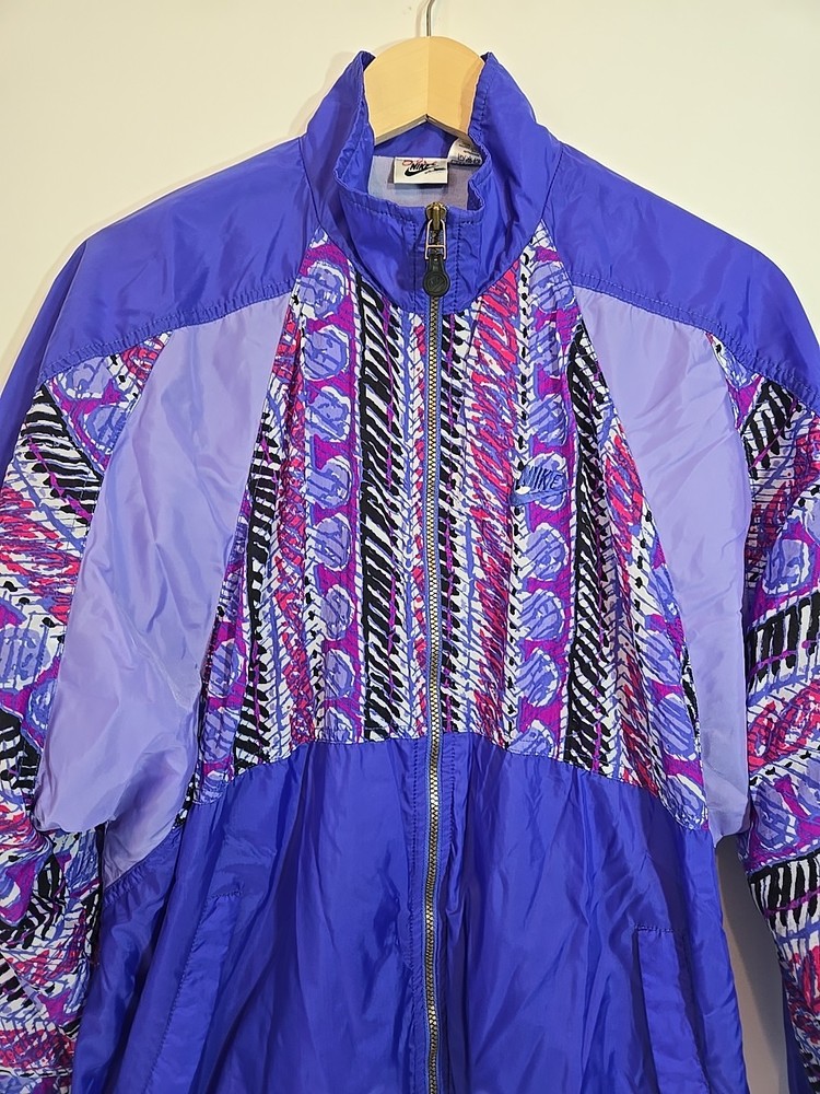 Nike Vintage White Tag Label 90's Retro Graphic Abstract Nylon Windbreaker Jacket Size: Large / 14 Measurements (approximate and flat lay) Shoulder to hem: 26" Waist side to side: 23" pre-owned - no rips, holes or stains. Comes from a smoke free home.