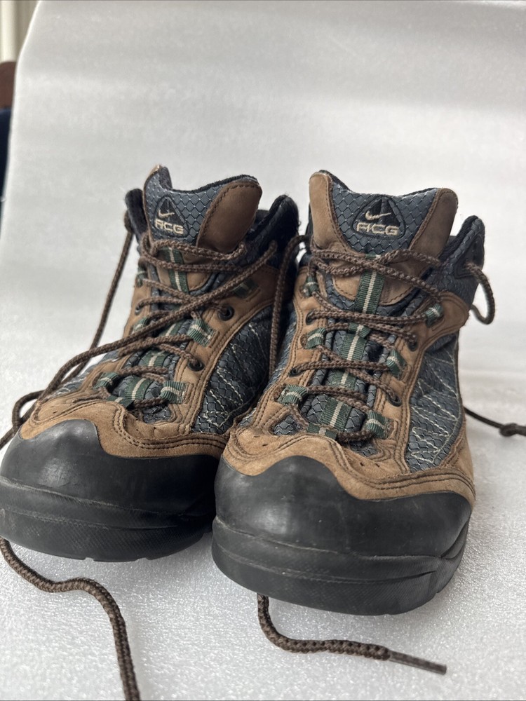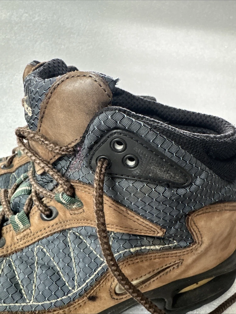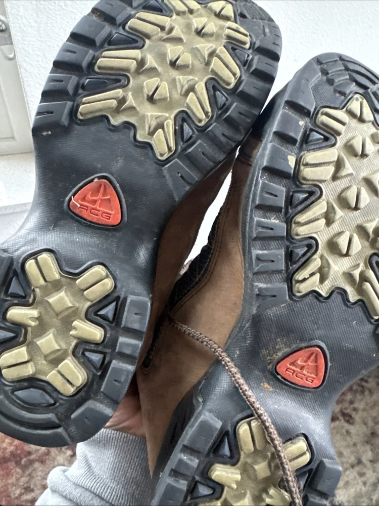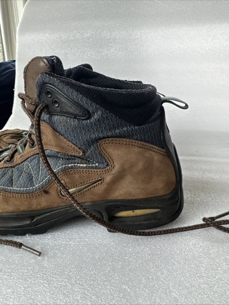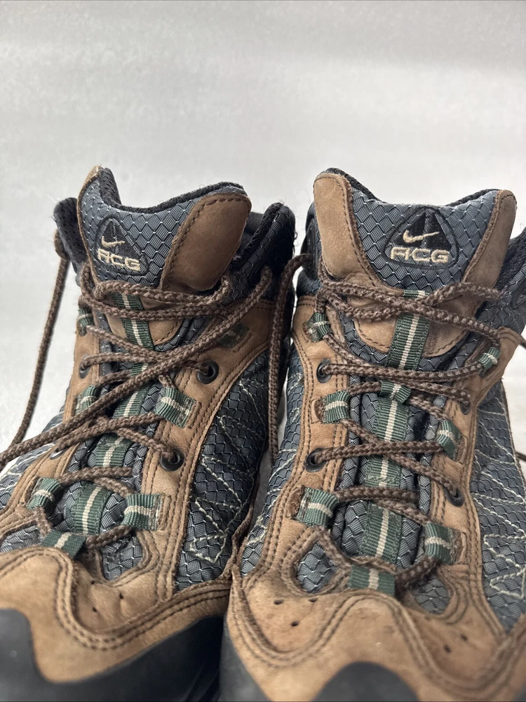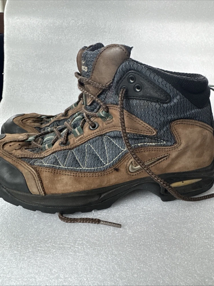 Item pre-owned. Signs of normal wear but otherwise great condition lots of life left in and miles! See pics for detailed condition. These Nike Men’s ACG Mid Top Brown Blue Hiking Boots are perfect for any outdoor adventure. With a stylish design and a comfortable fit, these boots are sure to be your go-to choice for any hiking trip. The Swoosh Trail design adds a touch of style to these functional boots, making them stand out from the rest. Crafted with quality materials, these boots provide excellent support and durability for any terrain. The brown color gives them a classic, outdoor look while the blue accents add a pop of color. These boots are perfect for any avid hiker looking for a reliable pair of boots to take on their next adventure.