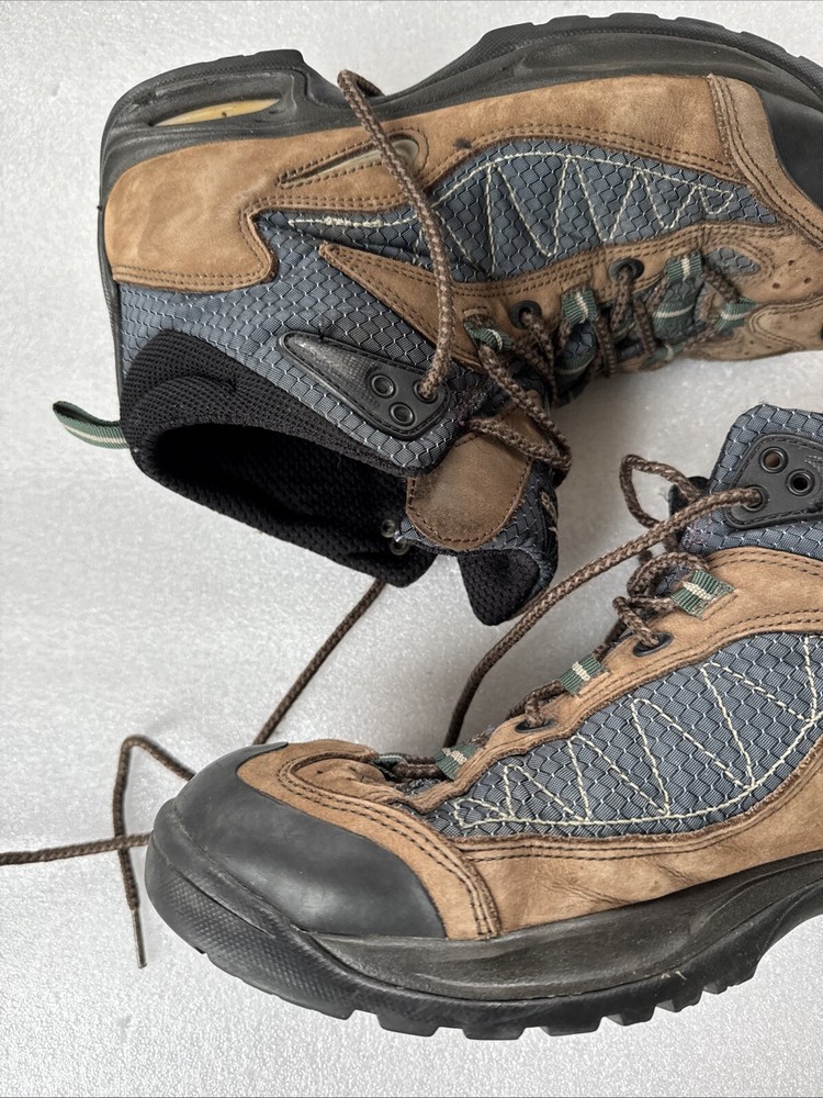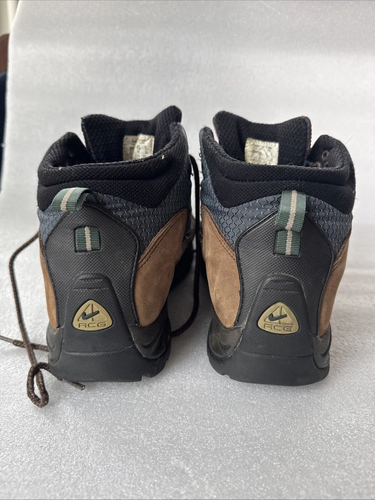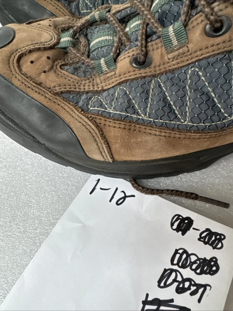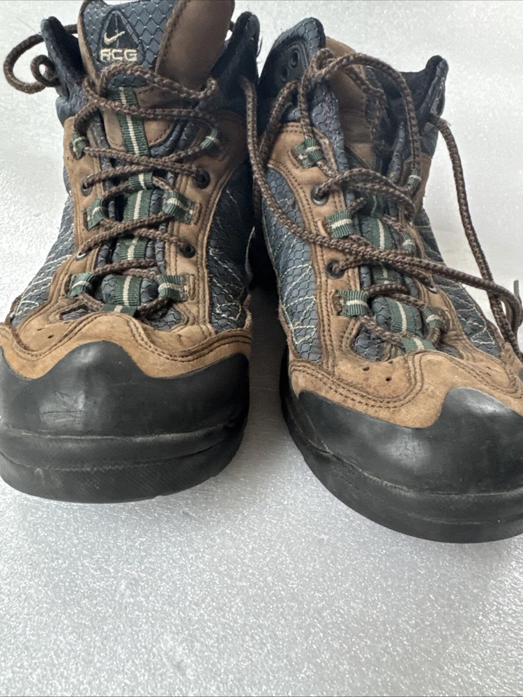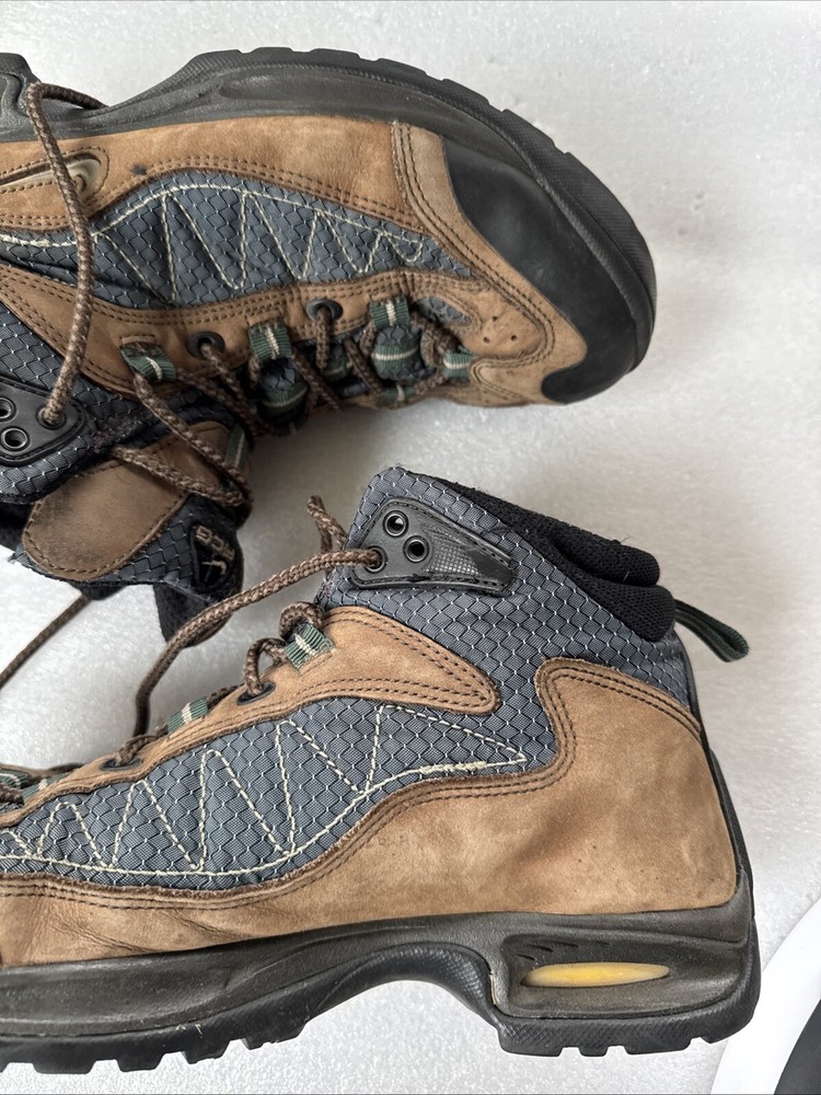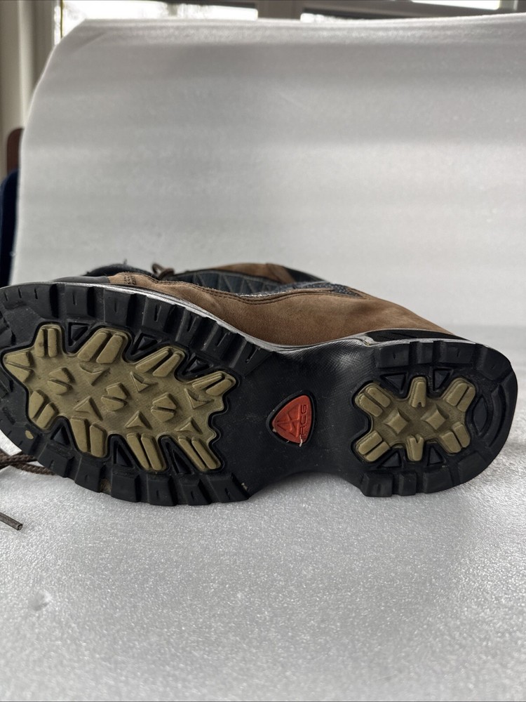 Item pre-owned. Signs of normal wear but otherwise great condition lots of life left in and miles! See pics for detailed condition. These Nike Men’s ACG Mid Top Brown Blue Hiking Boots are perfect for any outdoor adventure. With a stylish design and a comfortable fit, these boots are sure to be your go-to choice for any hiking trip. The Swoosh Trail design adds a touch of style to these functional boots, making them stand out from the rest. Crafted with quality materials, these boots provide excellent support and durability for any terrain. The brown color gives them a classic, outdoor look while the blue accents add a pop of color. These boots are perfect for any avid hiker looking for a reliable pair of boots to take on their next adventure.