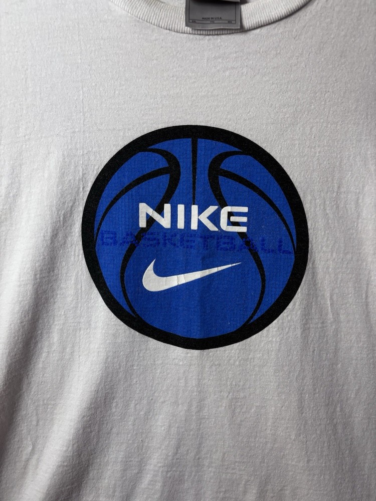 Nike Basketball T Shirt Mens XXL White USA Made Y2K Center Swoosh Logo Classic early 2000s Nike Basketball graphic tee featuring the iconic center chest basketball logo with Swoosh branding. Produced in the USA during Nike’s late 90s / Y2K era, this piece offers authentic vintage athletic styling with a clean minimalist look perfect for everyday wear or streetwear fits. Features • Authentic Nike Basketball branding • Made in USA production • Center chest basketball logo graphic • Short sleeve crewneck design • Comfortable cotton construction • Y2K era Nike release • Oversized vintage fit Condition Pre-owned vintage condition. Light normal wear consistent with age. No major flaws observed Please Note Vintage sizing may differ from modern sizing. Please review measurements for best fit. Authenticity We carefully inspect all branded items and only sell genuine merchandise. Shipping Items ship quickly with secure packaging