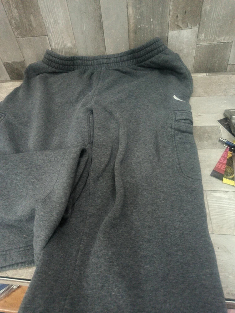 Elevate your activewear game with these Nike Cargo Sweatpants in size 2XL. The drawstring closure and solid pattern make them perfect for casual wear as well. These sweatpants are made of a comfortable and stretchy polyester, cotton, and cotton blend fleece material, ensuring that you stay comfortable during any season. Featuring the Nike Swoosh logo and a straight leg style, these sweatpants are perfect for gym and training, walking, and running and jogging. With pockets for added convenience, you can easily carry your essentials with you wherever you go. These Nike Fleece sweatpants are machine washable, making them easy to care for. Add them to your wardrobe today for a comfortable and stylish option for any occasion.