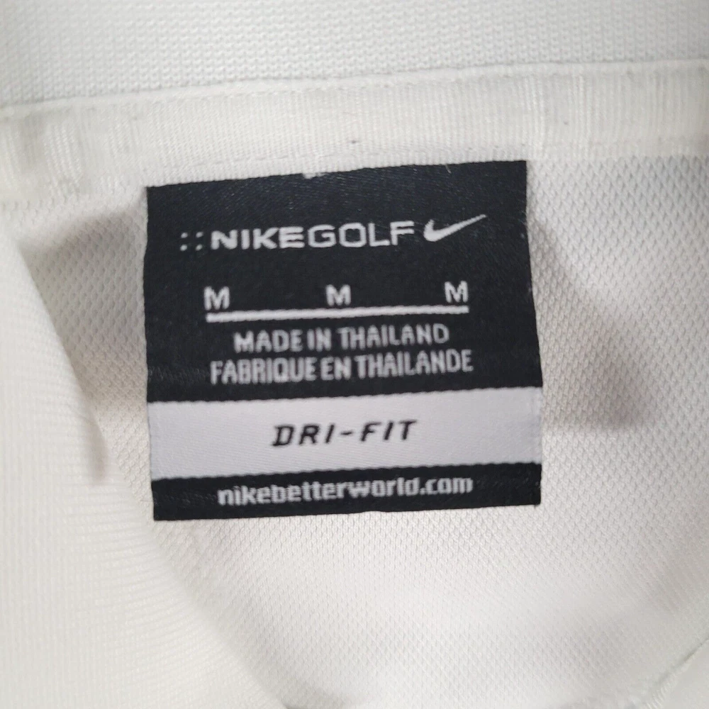 Chest Size: 42 in Pattern: Solid Character: Speed Racer Department: Men Season: Fall, Spring, Summer, Winter Type: Polo Personalize: No Garment Care: Machine Washable Theme: Sports, Golf Closure: Pullover Handmade: No Size Type: Regular Product Line: Nike Golf Fabric Wash: Medium Color: White Fit: Regular Performance/Activity: Golf, Racing, Walking Size: M Brand: Nike Vintage: No Seller Notes: “in good condition” Sleeve Length: Short Sleeve Material: Polyester Fabric Type: Knit Features: Easy Care, Breathable, All Seasons Model: Nike Dri-Fit Neckline: Collared Country/Region of Manufacture: Thailand Shirt Length: 28 in Occasion: Activewear, Business, Casual, Christening, Formal, Party/Cocktail, Travel, Wedding, Workwear Accents: Embroidered, Logo Collar Style: Spread