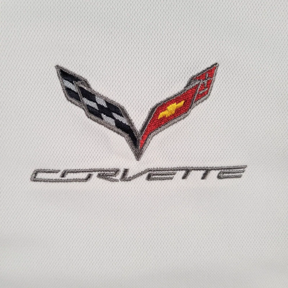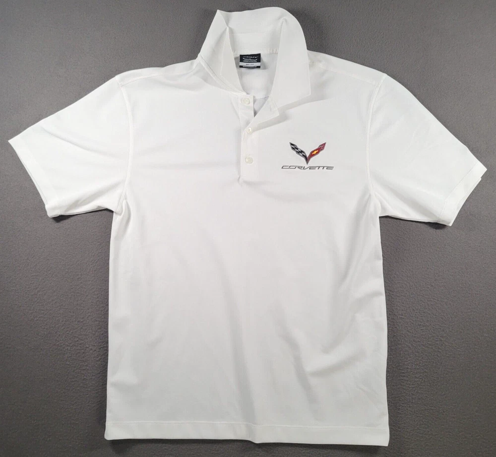 Nike Corvette Polo Shirt Mens Medium White Emroidered Logo Racing Dri Fit Golf