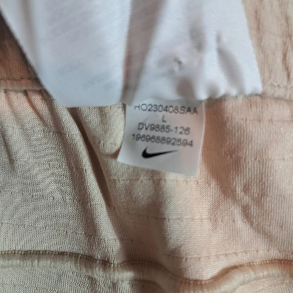Elevate your yoga practice with the Nike Dri-Fit Flex Tapered Yoga Training Pants in a versatile beige. Designed for men, these size large pants combine function and comfort, featuring breathable fabric that helps keep you cool and stretchy material that accommodates your full range of motion. The drawstring closure ensures a secure fit while the tapered leg style offers a sleek look that doesn't sacrifice performance. With features like three convenient pockets for your essentials and a durable blend of cotton and polyester, these pants are not just for yoga but also versatile for other activewear occasions. The Nike Yoga product line emphasizes a sporty yet casual theme, making these joggers a great addition to your athletic wardrobe. The inseam length is detailed in the pictures for a perfect fit. Items are carefully inspected and sealed after photos. We carefully pack and ship out fast! We ship daily with one day handling.