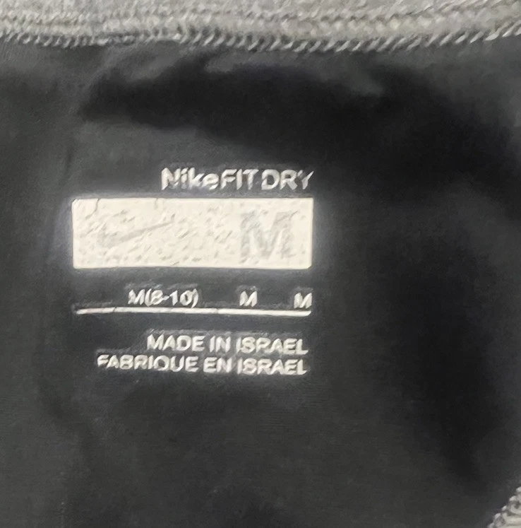 This is a Nike Dri-FIT Swoosh sports bra for women in size Medium, designed in a solid gray color with a racerback strap. It offers medium support and features the Nike logo as an accent. Suitable for gym workouts and yoga, this pullover style bra is machine washable and part of the Nike Dri-FIT product line. Perfect for active and sporty individuals.