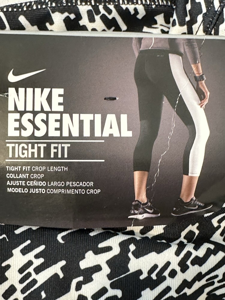 New Nike Dri-Fit Running Compression Crop Leggings Black White 27x21 Excellent Condition See Pictures