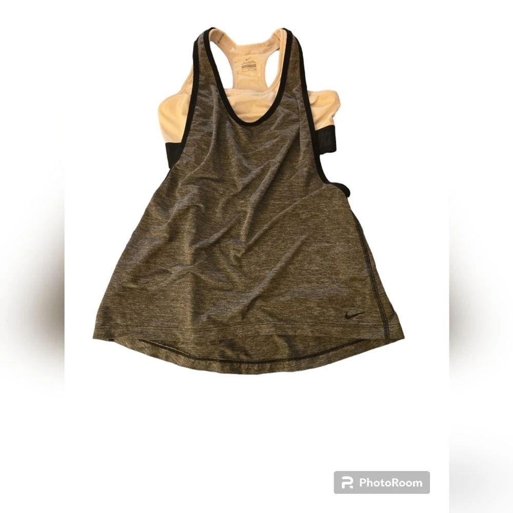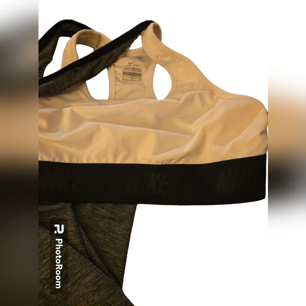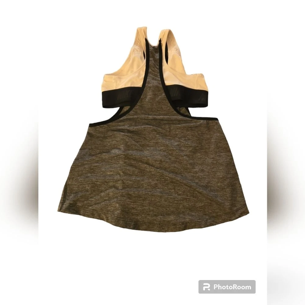 Nike Dri-Fit Racerback Tank Top with Built in Sports Bra Women's S Heather Grey Dri-Fit material wicks moisture away to keep you dry *MAKE YOUR OWN BUNDLES* I have a lot of the same size, style, and name brand items. If you look at items and see anything you like I will bundle so you can get a better price and helps with shipping! Comes from a non smoking, no bug, clean home. I only use gain detergent on laundry, and I do not wear any perfume.