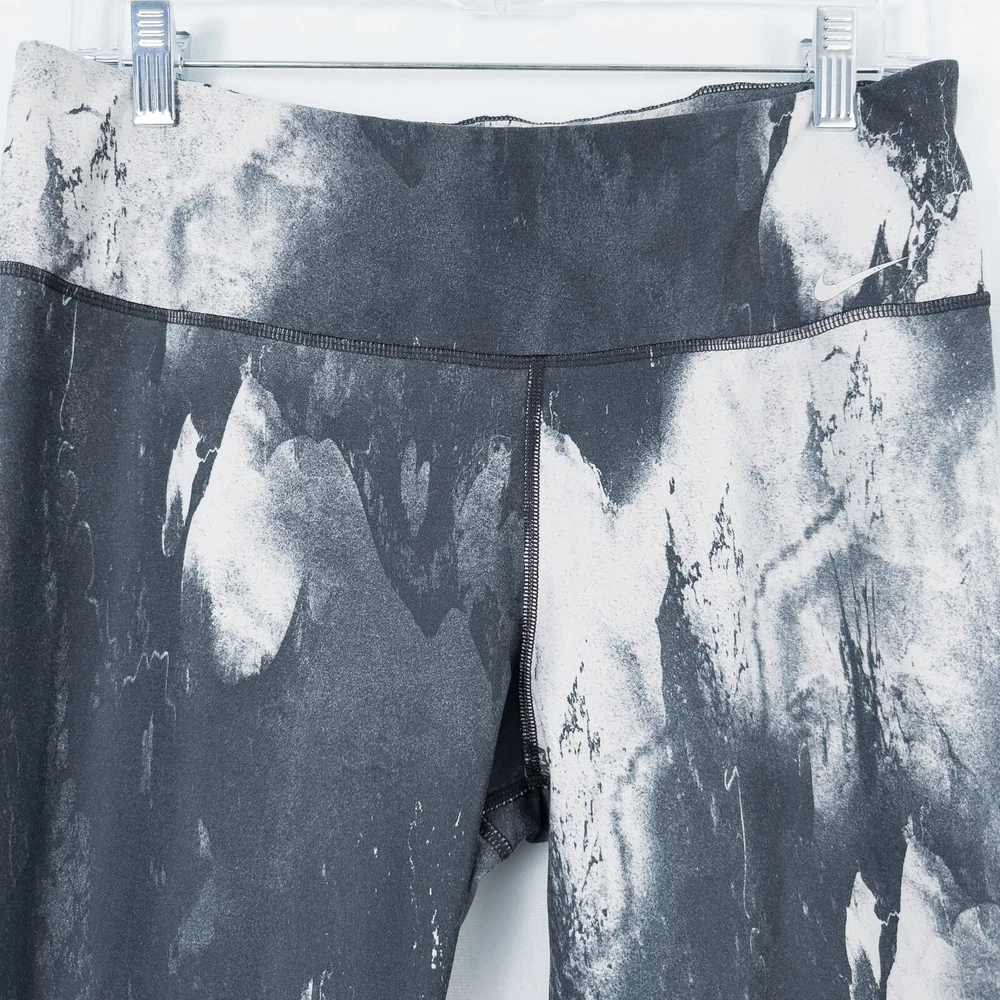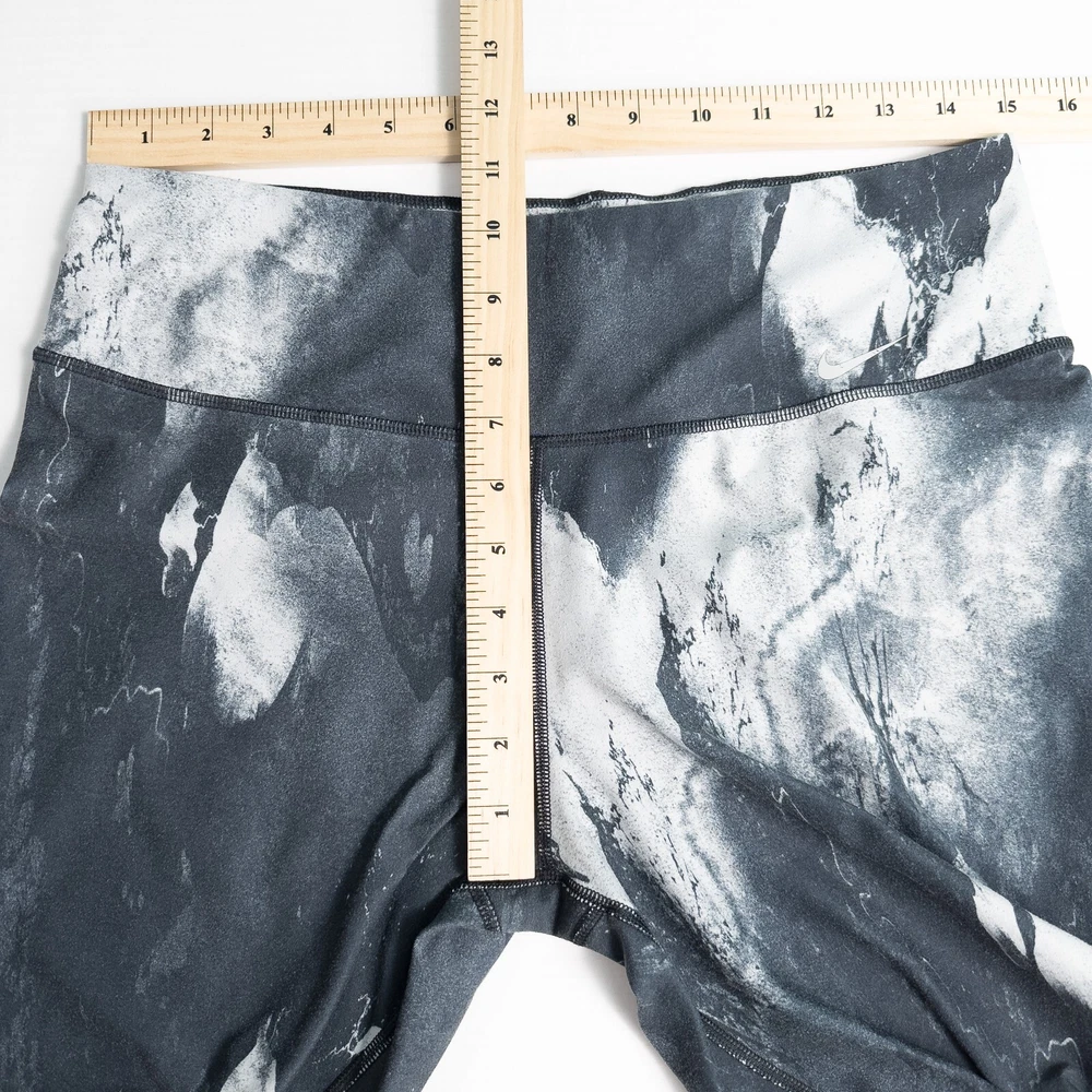 Nike Women's Dri-Fit Ten One Athletic Leggings * Condition: Good pre-owned condition. There's wash wear throughout and some cracking of the inside printed tag and waistband logo. No stains or holes. Please see photos. * Size: Large * All measurements are approximate and taken lying flat. Please see photos as well. * Waist: 15” across * Inseam: 28.5” * Rise: 10.25” * Color: Gray, black, white * Pattern: Marble * Material: 88% Recycled Polyester, 12% Spandex * Wide stretchy waistband * Inner waistband pocket * Sweat wicking and quick drying material * Style Number: 522097-015 * Machine Washable Style Profile: Athletic, Activewear, Athleisure, Gym, Training, Running, Fitness All of my items are stored in a smoke-free, dog-friendly home.