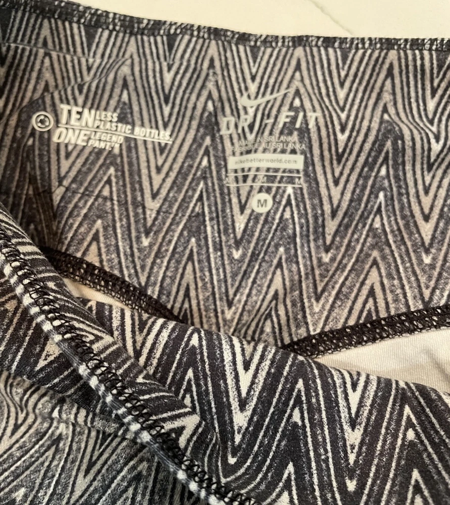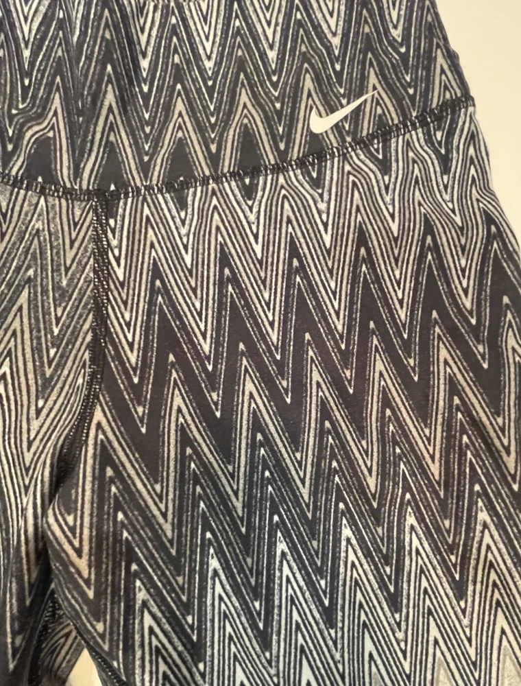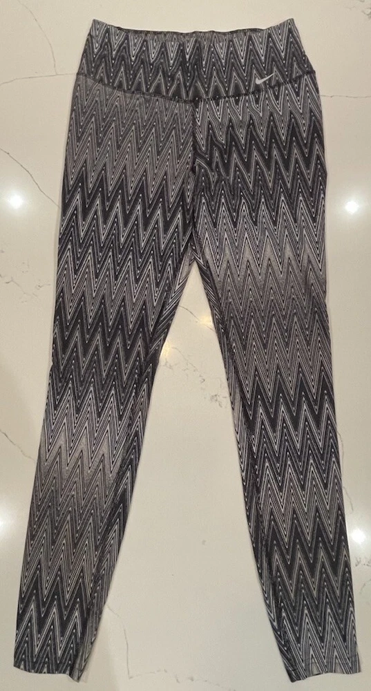 Nike Dri-Fit Women’s Long Leggings Black And Grey Zig-Zag Pattern Size M