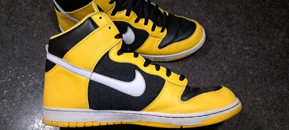 Dunk high yellow black from 2008 extreamly rare especially in this size. Pairs on goat are over $300, and there isn't a single 14 anywhere. Still wearable coming from my personal collection.