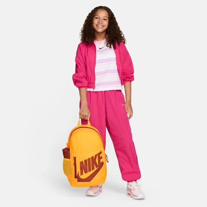 NWT * Nike Elemental Kids Backpack MSRP: $37 SIMPLE, FUNCTIONAL STORAGE. Whether it's rushing to class or hanging out after school with friends, this backpack has the space to tackle it all. This bag features a large side pocket for water bottles as well as a front pocket to store quick-grab items. Adjustable padded straps make wearing this bag comfortable and easy. Benefits Connected by a secure clip, the bag also comes with a large pencil case. Double zippers on main compartment allow for easy opening. Haul loop gives you an alternate carrying option. Product Details 18"H x 12"W x 5"D 100% polyester Spot clean Color: Laser Orange/Burnt Sunrise/Burnt Sunrise Style: DR6084-845 New with Tag Thanks for looking! Check out my other items for more great deals! Return Policy We accept return within 30 days of the original purchase date. Merchandise must be in original, unworn condition to be eligible for a refund.