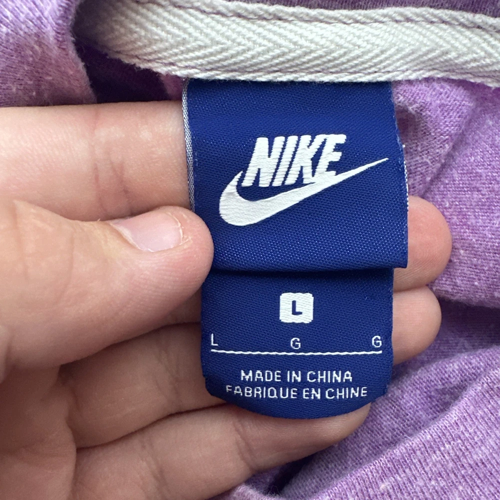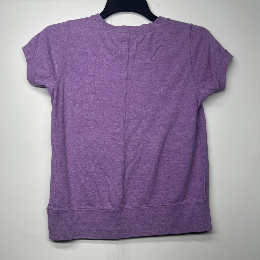 The Nike Girls T-Shirt in size Large is a stylish and comfortable top for young girls. This lavender short sleeve shirt features the iconic "Just Do It" logo with a pocket, making it perfect for casual occasions during the summer, fall, and spring seasons. Made from a cotton blend fabric, this pullover shirt is easy to wear and ideal for various activities such as walking, school, and running & jogging. The Nike brand adds a sporty and colorful touch to this popular and versatile piece of clothing. It is slightly lighter than how it looks in my photos The pit to pit is 16 inches and the shoulder length down is 19.5 inches