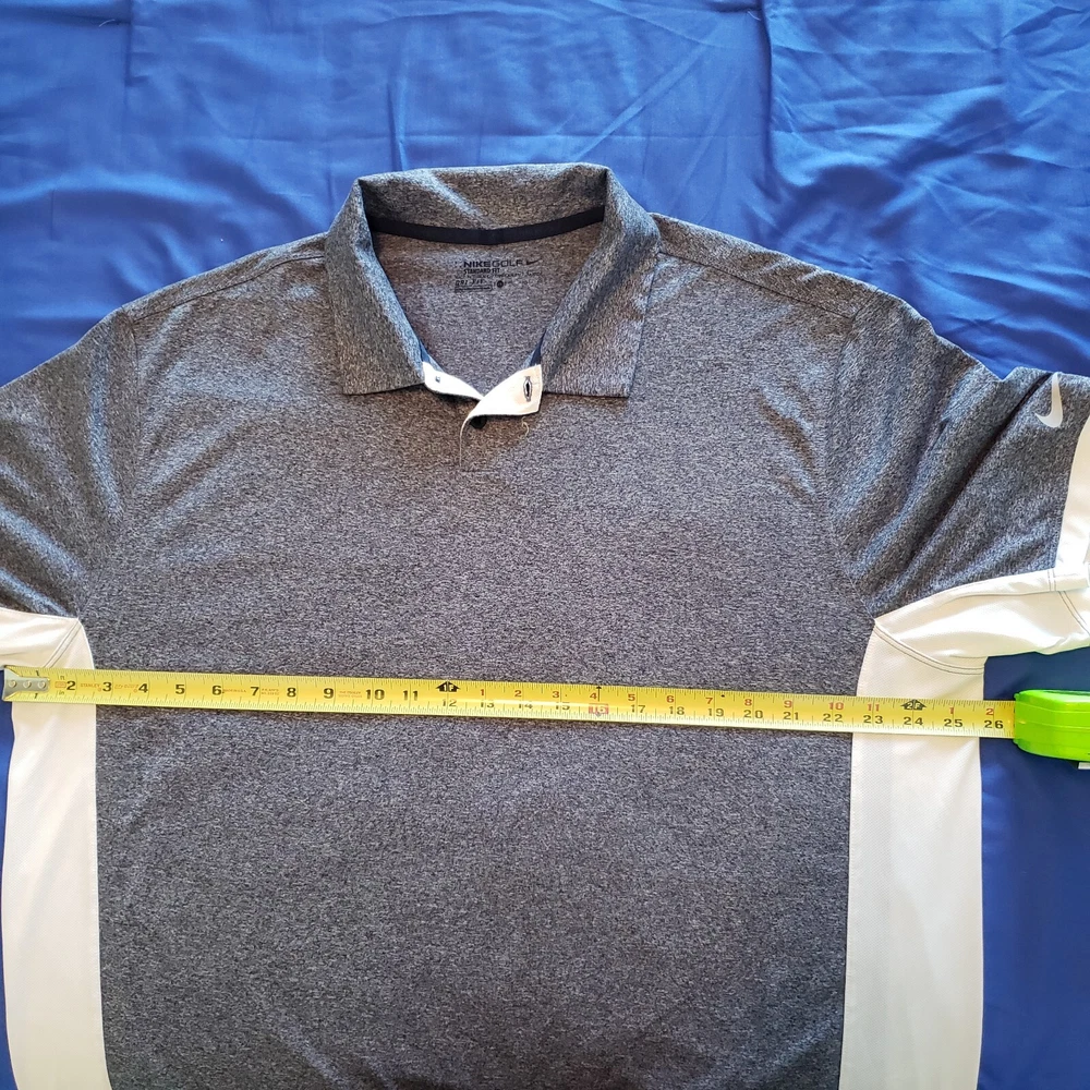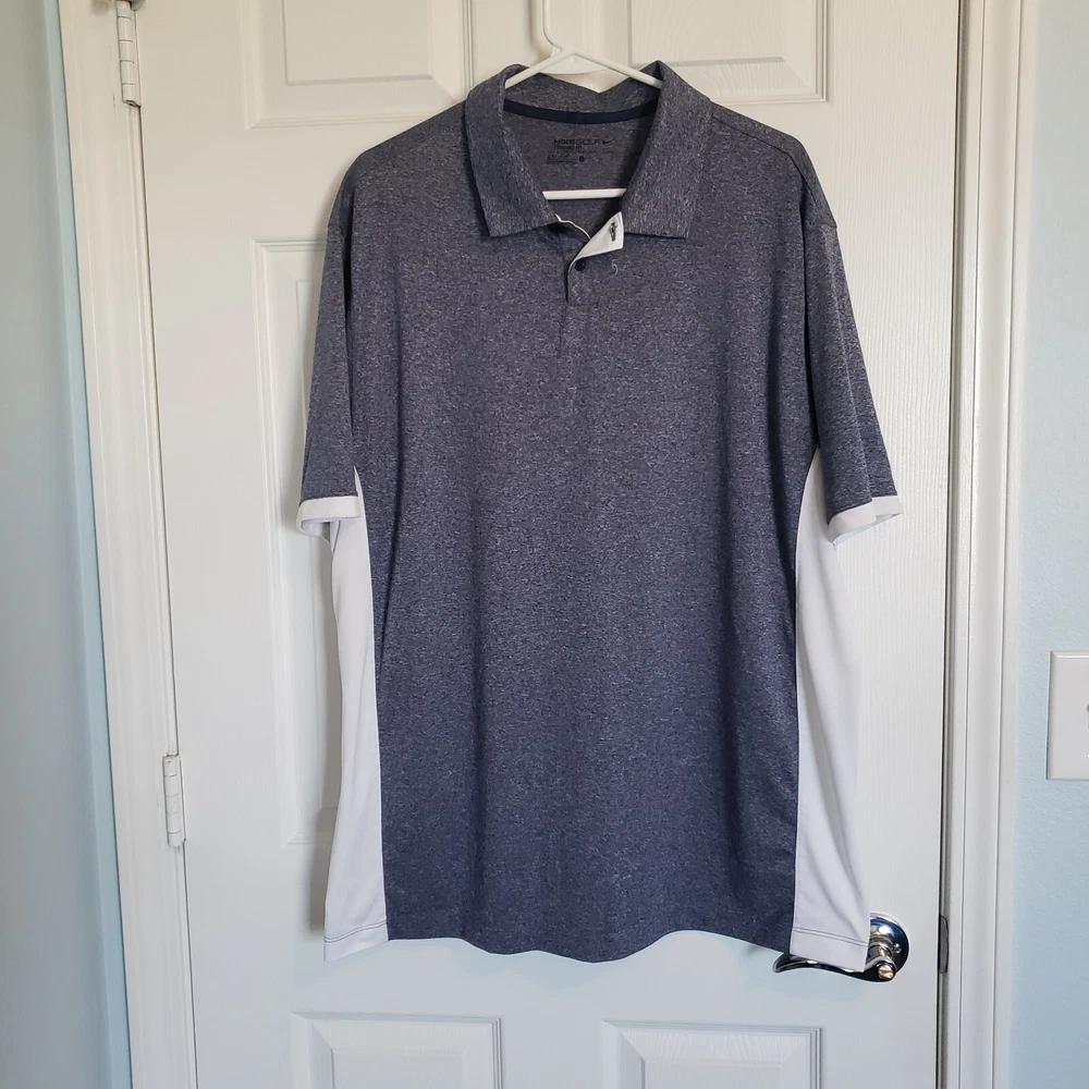 Nike Golf Dri Fit Stretch Polo. Size XL. Colorblock with Heathered Blue and White Mesh for breathability. Logo on sleeve. Excellent condition. Returns accepted - buyer pays return shipping.