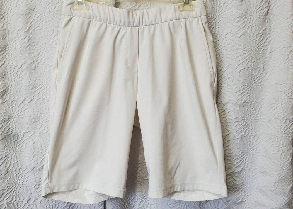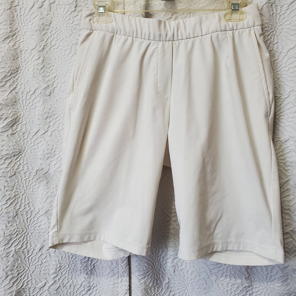 Pre owned - Nike Golf Dri-Fit White Bermuda Golf Shorts Women's Size S Approx. Measurements: Waist - 14" Midrise - 10" Inseam - 9.5" Elastic waist
