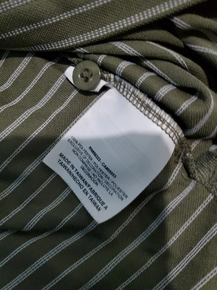 This Nike Golf men's polo shirt in size XL is perfect for any casual or business occasion. The shirt features a collared neckline and a button closure. It is made from a blended fabric and has a green striped pattern. The shirt is easy care, preshrunk, stretchy, quick-drying, moisture-wicking, and breathable, making it suitable for any season. It is a Nike Tour Performance model, with the Nike logo and button accents. This shirt is machine washable, and its chest size is as seen in the picture. It is ideal for outdoor sports such as tennis, walking, and golf.