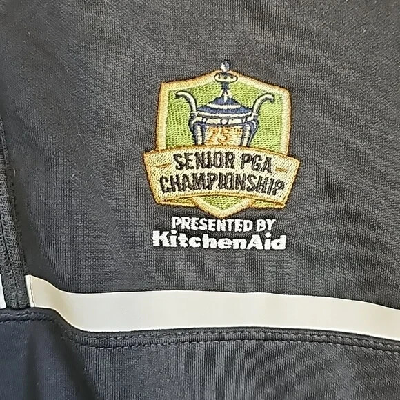 Nike Dri Fit Tour Performance Quarter-Zip Pullover Shirt Senior PGA Championship Presented by Kitchen Aid Black Size Large APPROXIMATE MEASUREMENTS Length: 27" Sleeves: 24" PTP: 22" Size Large No holes, tears, or stains. Overall great condition. Tags: Golf, outdoor, tennis, sports, sporty, jacket, top, shirt, sweatshirt, pullover