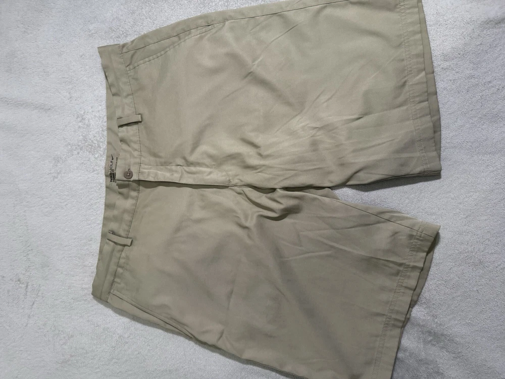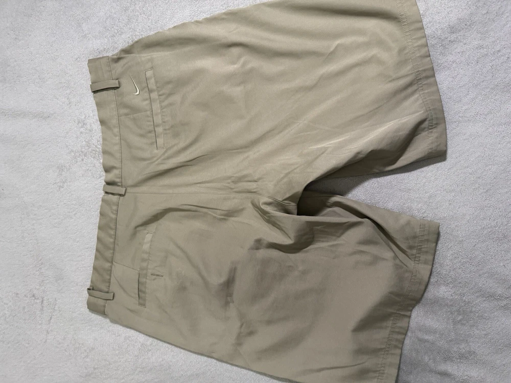 Elevate your golf game with these Nike Men's Golf Shorts in Beige. The Dri-Fit and stretchy Polyester-Spandex material make them perfect for all-day comfort on the course. The flat front and Chino style give a classic look, while the embroidered logo adds a touch of style. The shorts feature a Zip closure and Coin Pocket for convenience, and the Easy Care and Machine Washable Garment Care make them a practical choice. These shorts are perfect for both casual wear and travel, and the American and Sports themes make them suitable for any occasion.