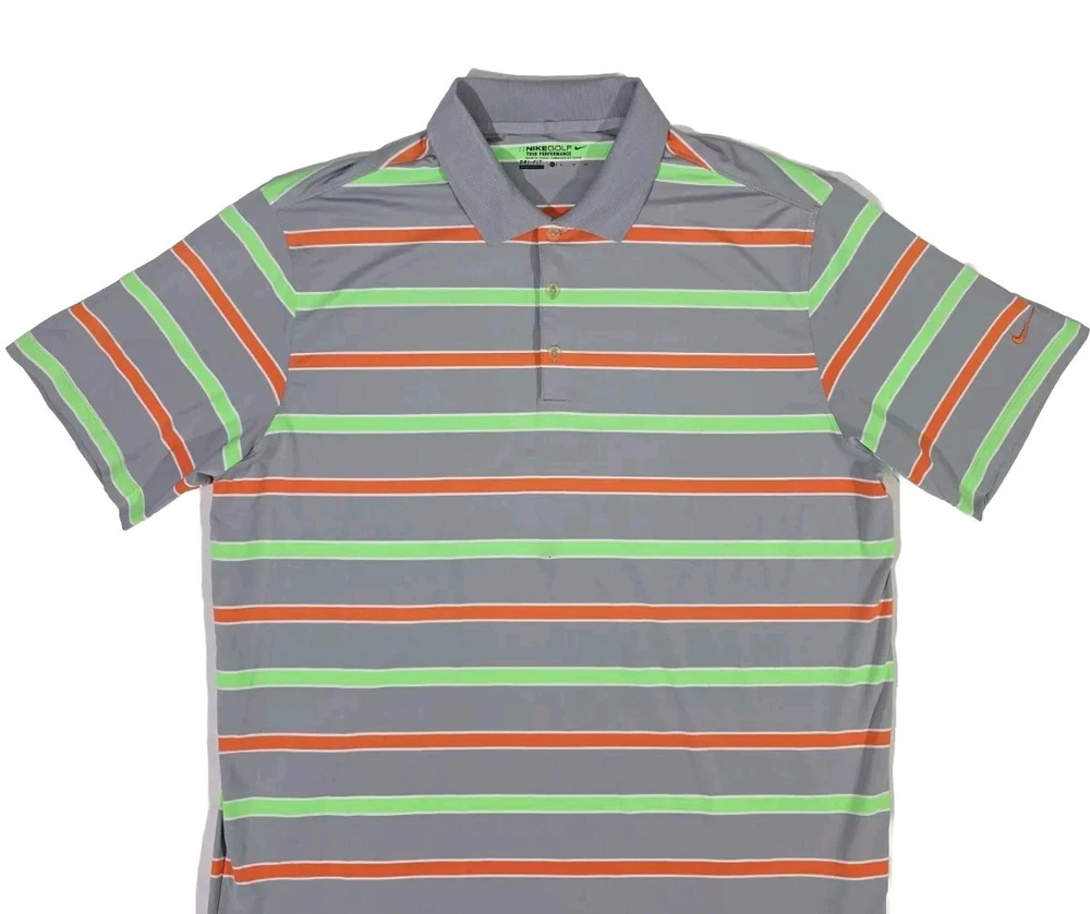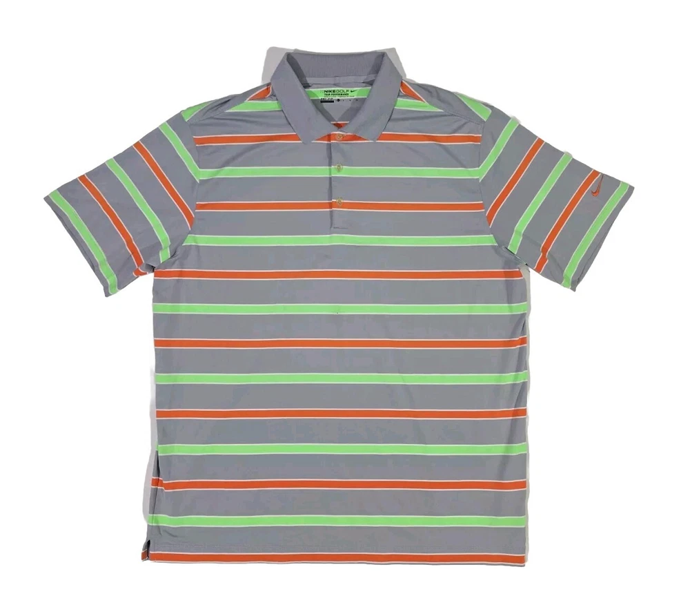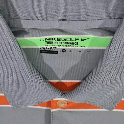 Nike Golf Tour Performance Gray Green Orange Strip Polo Shirt Men's XL Dri-Fit Measures Approx: Total Length - 31 inches Arm Pit to Arm Pit - 24 inches Shirt is Very Clean and in Very Good to Excellent Overall Condition!! Please see pics for details...