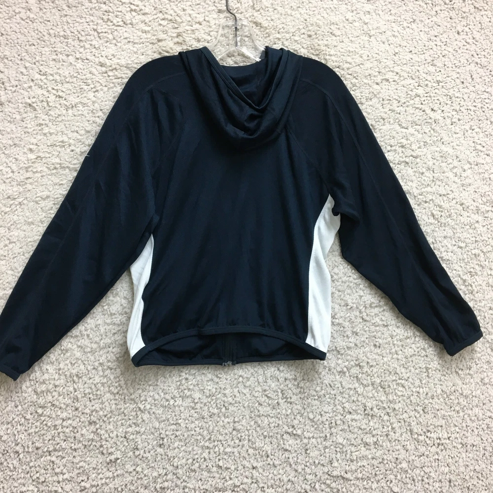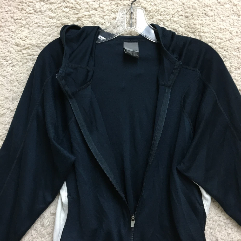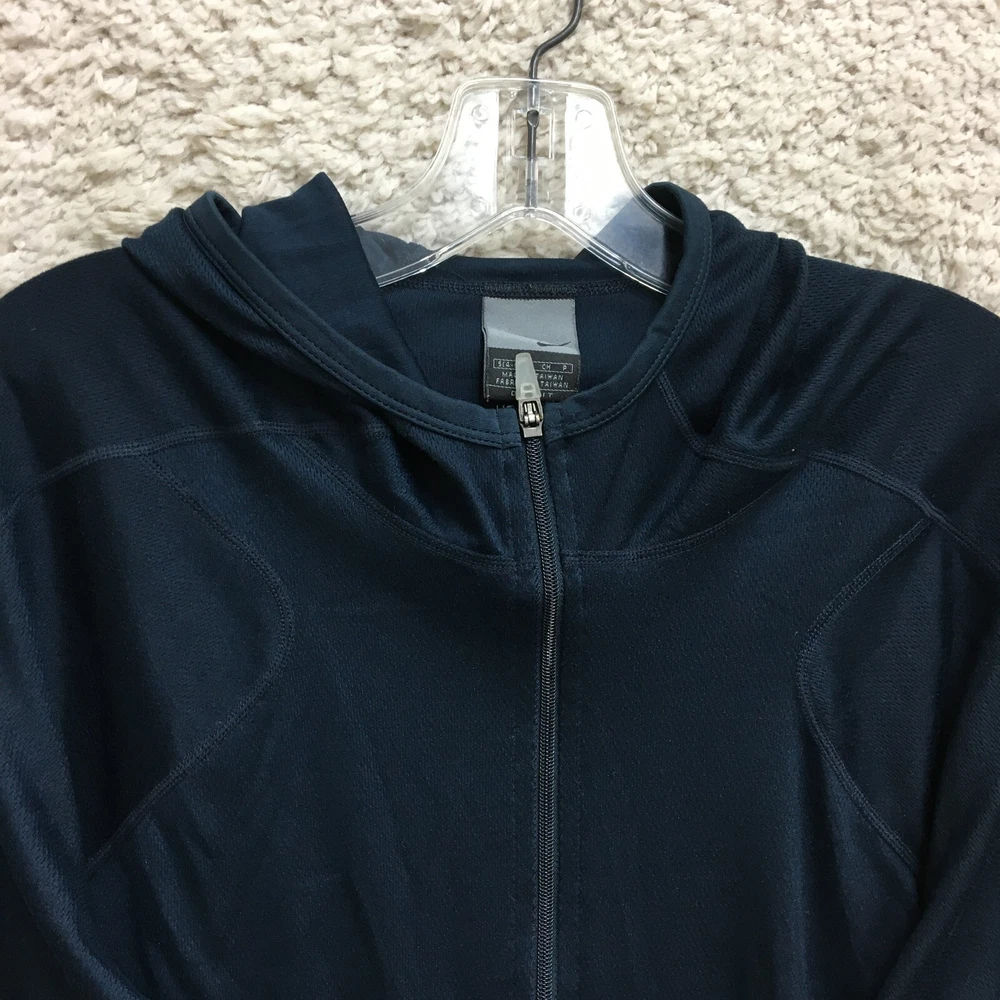 Fit: Regular Color: Blue Sleeve Length: Long Sleeve Style: Full Zip Country/Region of Manufacture: Taiwan Fabric Type: Blended Fabric Closure: Zip Season: Fall, Spring, Summer, Winter Department: Women Brand: Nike Size: S Garment Care: Machine Washable Product Line: Nike Dri-FIT Seller Notes: “Good Used Condition. Please, See Pictures for Full Condition and Measurements.” Material: Polyester Features: All Seasons, Easy Care, Hooded, Pockets, Stretch Accents: Logo, Zipper Type: Hoodie Theme: Logo, Outdoor, Sports Occasion: Activewear, Casual Pattern: Solid Neckline: Crew Neck Size Type: Regular Performance/Activity: Running & Jogging, Walking