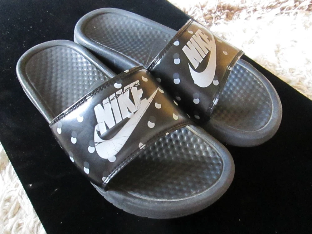 Nike JDI Polka Dot Slides Sandals Black White 618919-007 Sz 7 / EUR 38