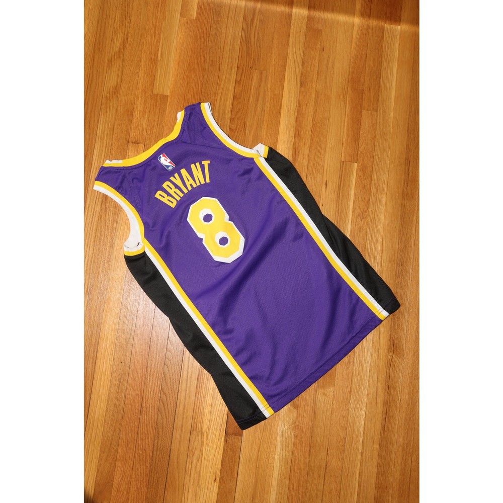 Purple Kobe Bryant jersey with black stripes down the sides. Size 40 which is a men's small. This jersey is in perfect condition and retails on stockx for $300. Number 8 jersey.