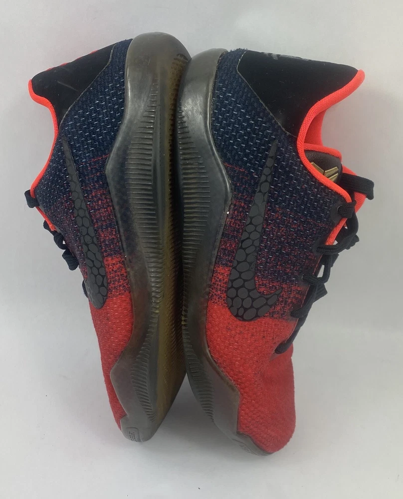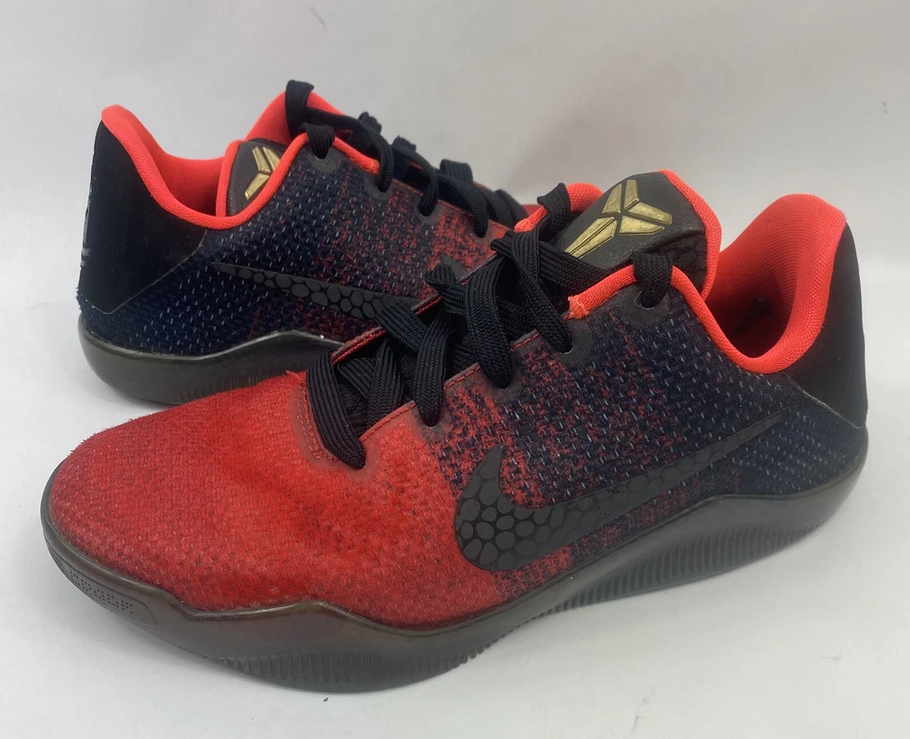 Nike Kobe XI Achilles Heel Basketball Sneakers in Youth Size 4Y. These low-top sneakers in black feature a lace-up closure and a colorful design. They are designed for basketball performance, with comfort in mind. Made by the brand Nike, the shoes are part of the Nike Kobe product line, specifically the Kobe 7 model. Perfect for activewear during the summer season.