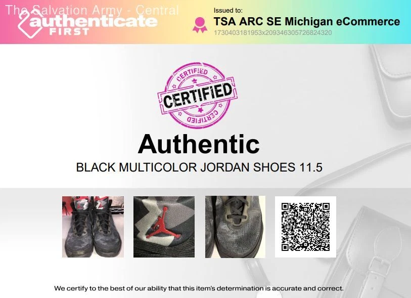 Item: A Pair of Women's Multicolor Nike Running Sneakers, Size 11.5. This item includes a digital certificate of authenticity Type & Color: Running Sneakers, Multicolor Condition: Good - shows some signs of wear Size: US Women's 11.5, as marked on shoe All net proceeds will support The Salvation Army - Adult Rehabilitation Centers. Thank you for your support! Customer Service Hours: Monday - Friday 8:00am - 4:00pm EST Updated Shipping Policy Starting April 1, 2023 Flat-rate Shipping Service To be eligible for combined shipping, all invoiced items must fall under our flat-rate shipping policy. When orders are combined under the flat-rate shipping policy, larger items will be charged $14.99 for the first item and an additional $6 shipping fee per additional item. Smaller items will be charged $9.99 for the first item a $1 shipping fee will be charged per additional item. Requests for combined shipments must contain less than 20 items per shipment and cannot include items that are sold with calculated shipping. These items include large or bulky items, instruments, artwork, or framed items. Calculated Shipping Service Please note that items that are sold with calculated shipping cannot be combined with other items in the same shipment. This is because these items may include large or bulky items, instruments, artwork, or framed items, which require separate shipping arrangements. Thank you for your understanding.