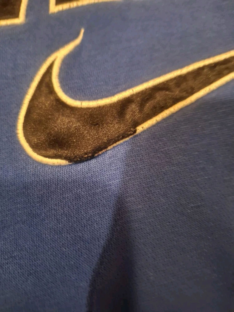Crafted for comfort and style, the Nike Men's Swoosh Pullover Hoodie in a sleek blue with black accents is a versatile addition to any wardrobe. Its long sleeves, round neck, and drawstring closure offer a classic hoodie silhouette, while the embroidered Nike logo adds a touch of brand prestige. Made from soft, breathable cotton and featuring a cozy hood with pockets for functionality, this hoodie is ideal for those looking to combine fashion with a casual edge. Whether you're out for a jog or lounging at home, the hoodie's solid pattern and knit fabric type cater to a range of occasions across fall, spring, and winter seasons. The machine-washable garment ensures easy care, making it a practical choice for everyday wear. With its regular fit in size large, this piece from the Nike Sportswear product line delivers both warmth and style without compromise.