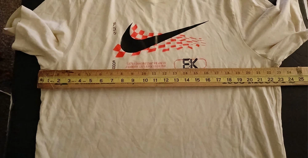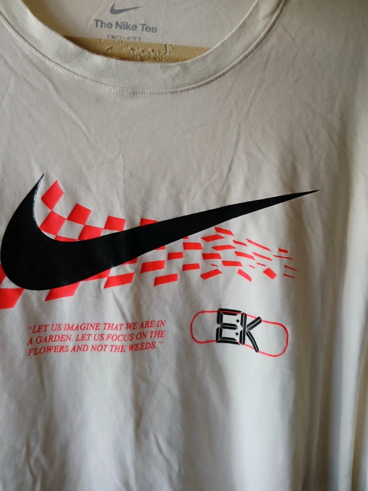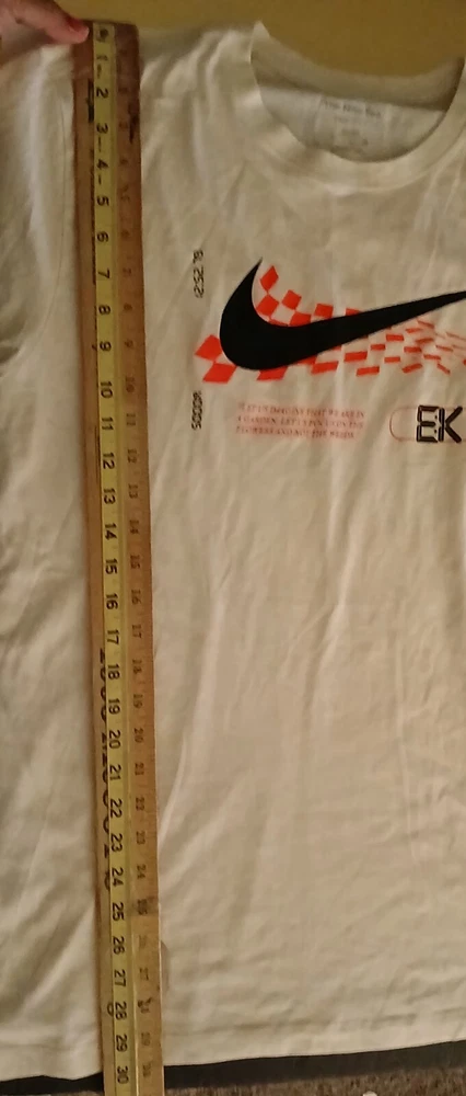 This Nike Men's Dri-Fit T-Shirt is a must-have for any sports enthusiast. Featuring a crew neck and short sleeves. The shirt is inspired by Eliud Kipchoge, a renowned marathon runner, and is perfect for any sports activity. The shirt is a part of the Nike brand. It is suitable for men and is ideal for wearing during any sports event. Used condition Measurements in photos