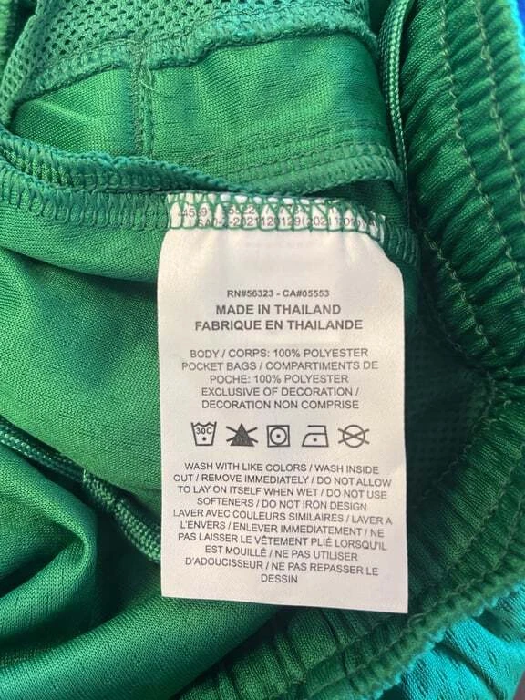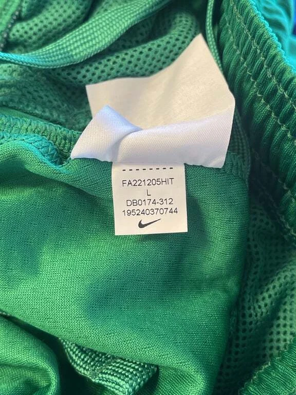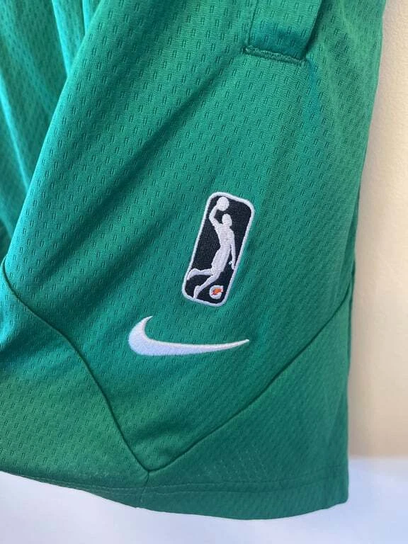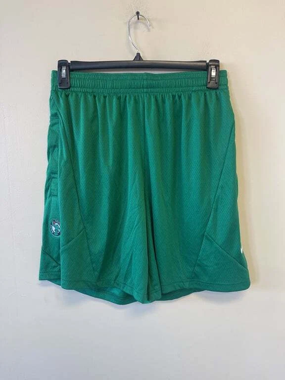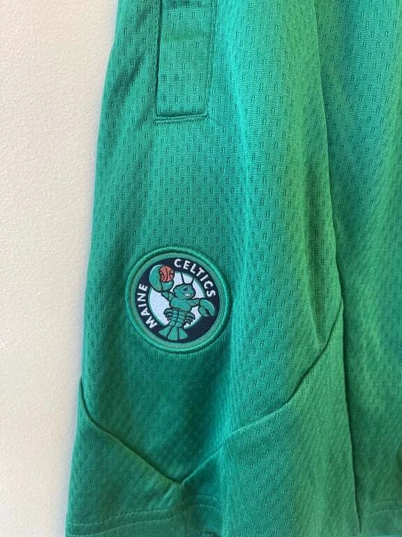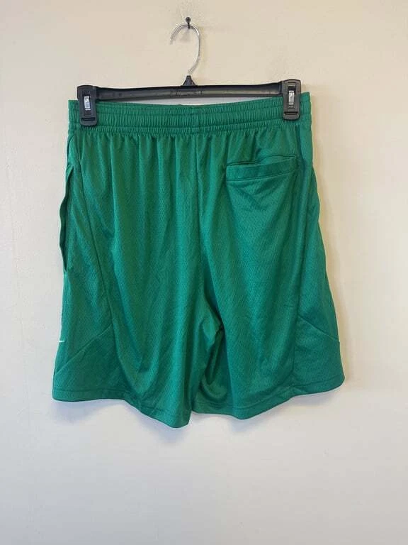 These Nike Men's Basketball Shorts in green are a perfect addition to your sportswear collection. Featuring the Maine Celtics logo, these shorts are made of 100% polyester for comfort and durability. They come in size Large and are designed to provide a comfortable fit for basketball activities. The shorts also include the iconic Nike logo and the NBA logo for an authentic look. Made in Thailand, these shorts are easy to care for, ensuring they stay in great condition game after game.