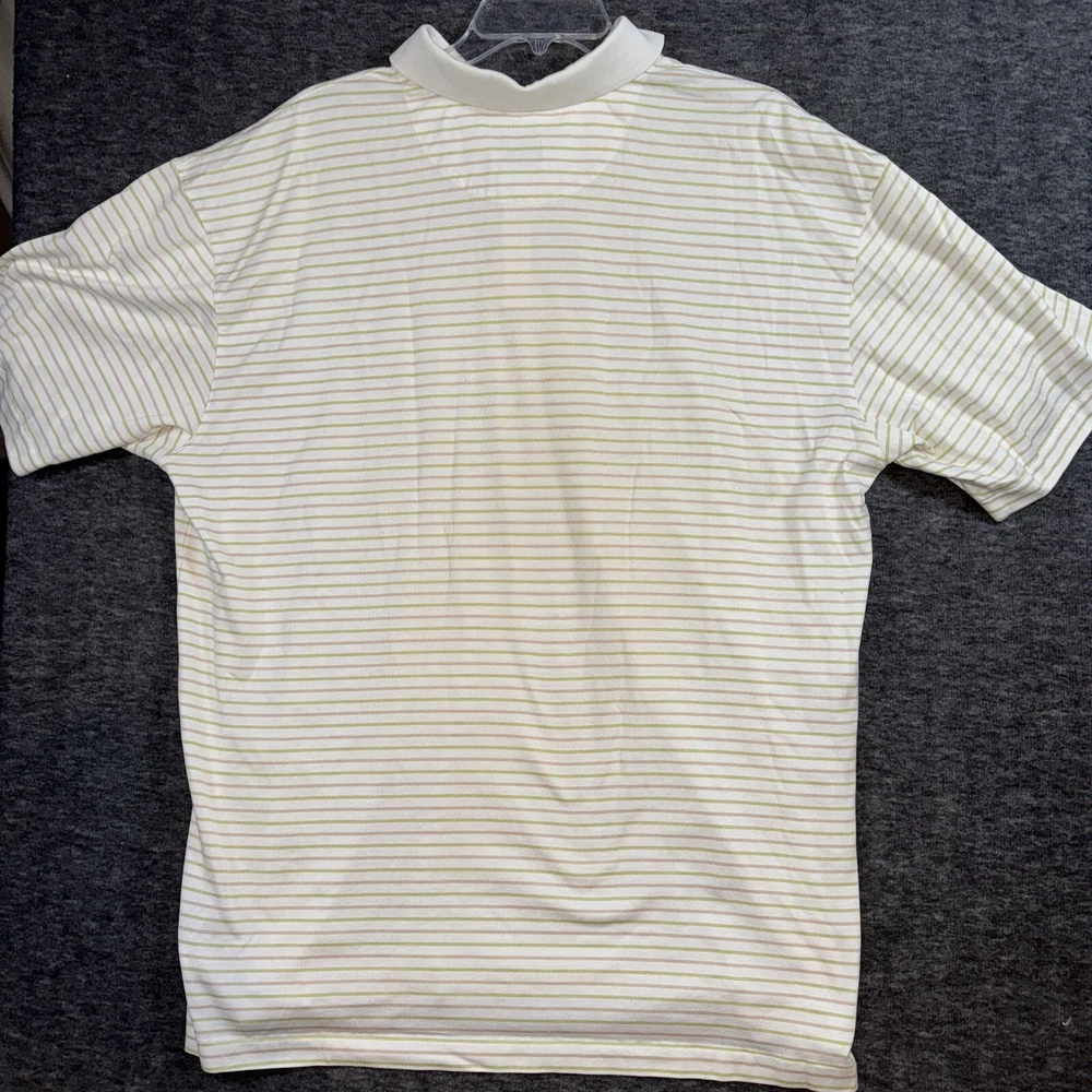 Elevate your golf game with this Nike Mens Tiger Woods Collection Striped Pale Yellow Dri-Fit Golf Polo in size XXL. Designed for comfort and performance, this polo features a collared neckline with a button-down closure, short sleeves, and a knit fabric type. The striped pattern and Tiger Woods logo accents add a touch of style to your golf course attire. Ideal for all seasons, this Nike Dri-Fit polo is perfect for various activities such as gym & training, track & field, rugby, tennis, walking, golf, baseball, basketball, fishing, football, hiking, running & jogging. Made of a blend of polyester and cotton, this regular-fit polo is suitable for men who want to look and feel their best during their favorite sports.