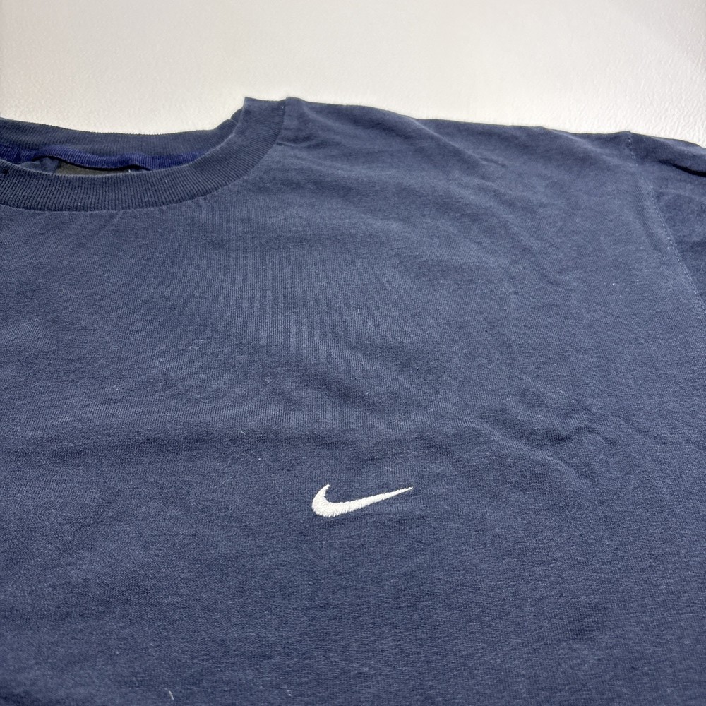 Nike Mini Swoosh T-Shirt Men’s XL Navy Blue 90s Red Tag Vintage Embroidered VTG Celebrate classic Nike style with this Men’s XL vintage 90s Mini Swoosh T-Shirt. Featuring the iconic embroidered mini swoosh on the chest and the desirable red tag, this navy blue tee offers authentic Y2K/90s streetwear appeal. Soft cotton, relaxed fit, and timeless minimalist branding make it a wardrobe staple for collectors and fans. 📌 Item Details Brand: Nike Era: 1990s / Y2K Tag: Red Tag Design: Embroidered Mini Swoosh Size: Men’s XL Color: Navy Blue Style: Short Sleeve T-Shirt Material: 100% Cotton Department: Men Features: Embroidered Logo, Vintage, 90s Streetwear ⭐ Key Features Classic 90s Nike red tag piece Mini embroidered swoosh for clean minimalist branding Soft cotton construction for everyday comfort Perfect for collectors of vintage Nike apparel Ideal for streetwear, casual outfits, or layering 🧼 Condition Pre-owned — Excellent vintage condition. No major flaws, holes, or stains. Clean and ready to wear! 📦 Fast shipping — packaged with care ✅ Trusted seller 📸 Actual item pictured 📋 Item Specifics Brand: Nike Size: XL Color: Navy Blue Department: Men Type: T-Shirt Era: 1990s / Y2K Features: Embroidered Swoosh, Red Tag Material: Cotton Style: Graphic/Logo Tee Condition: Pre-Owned 📂 eBay Category Clothing, Shoes & Accessories → Men → Men’s Clothing → T-Shirts