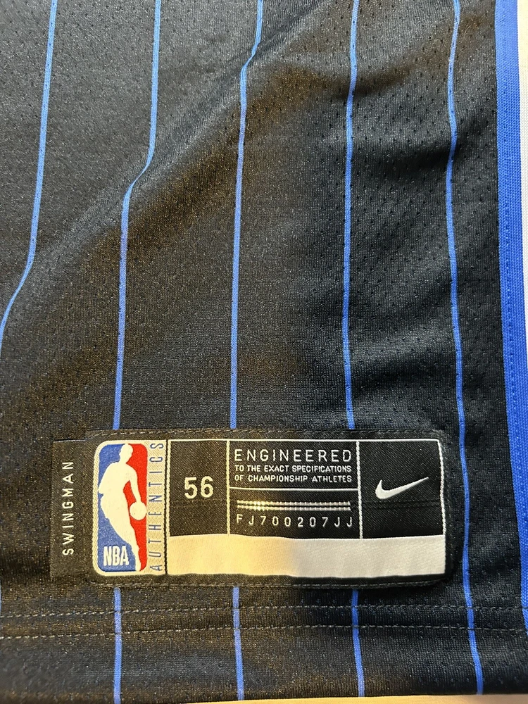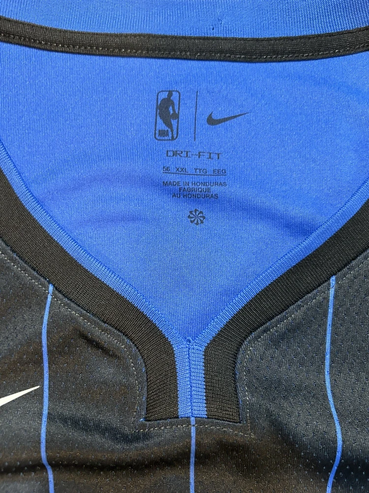 Show your support for the Orlando Magic with this officially licensed Nike Icon Swingman Jersey featuring Franz Wagner's number 22. Made from high-quality materials, this black jersey is perfect for any basketball fan. The size 2XL jersey is designed for men and features the team's iconic logo on the front. This jersey is perfect for the pre and post season, and is a must-have for any fan of the National Basketball Association (NBA). Whether you're cheering on the Orlando Magic or just want to add to your collection of sports memorabilia, this Nike Icon Swingman Jersey is a great choice. Men's Size 2XL