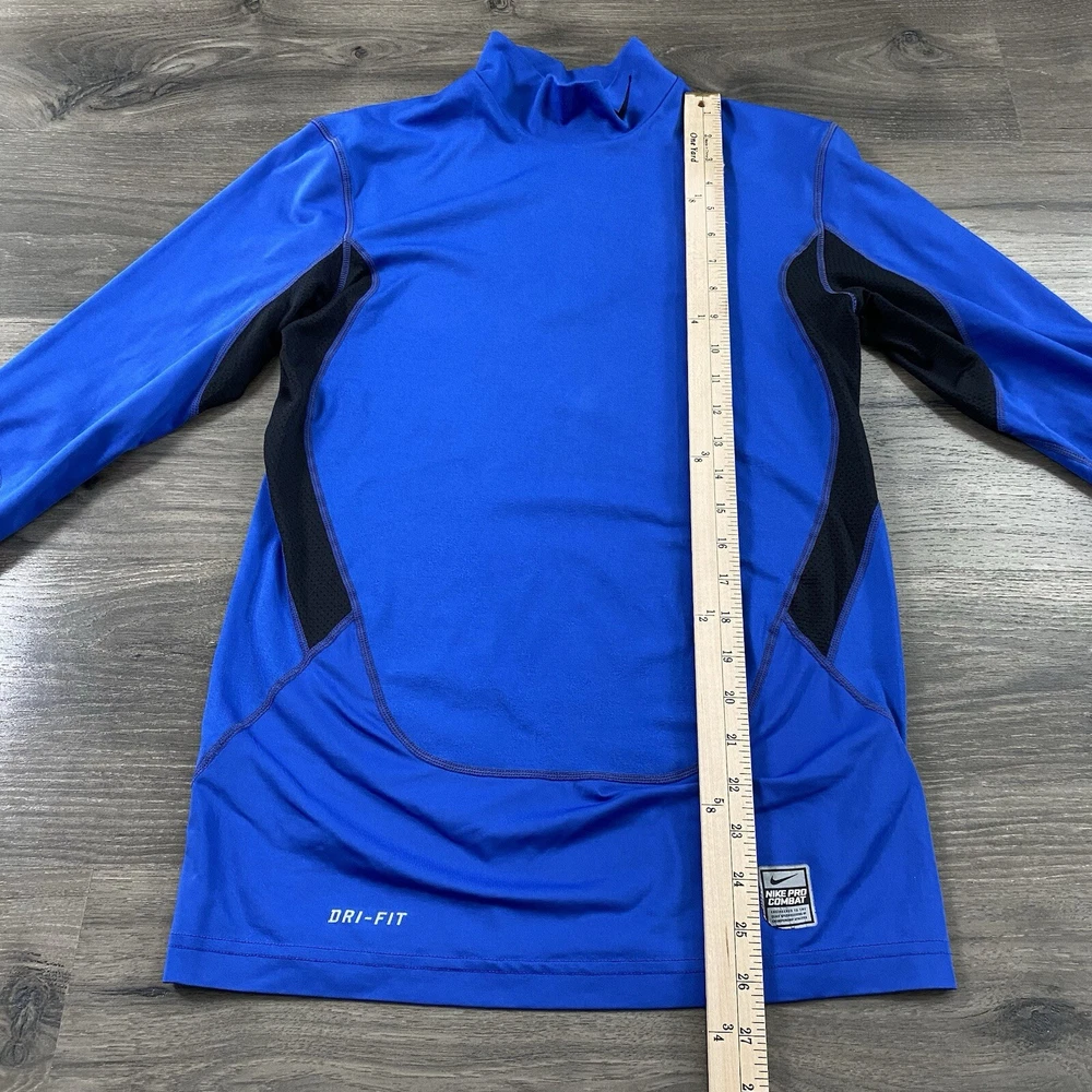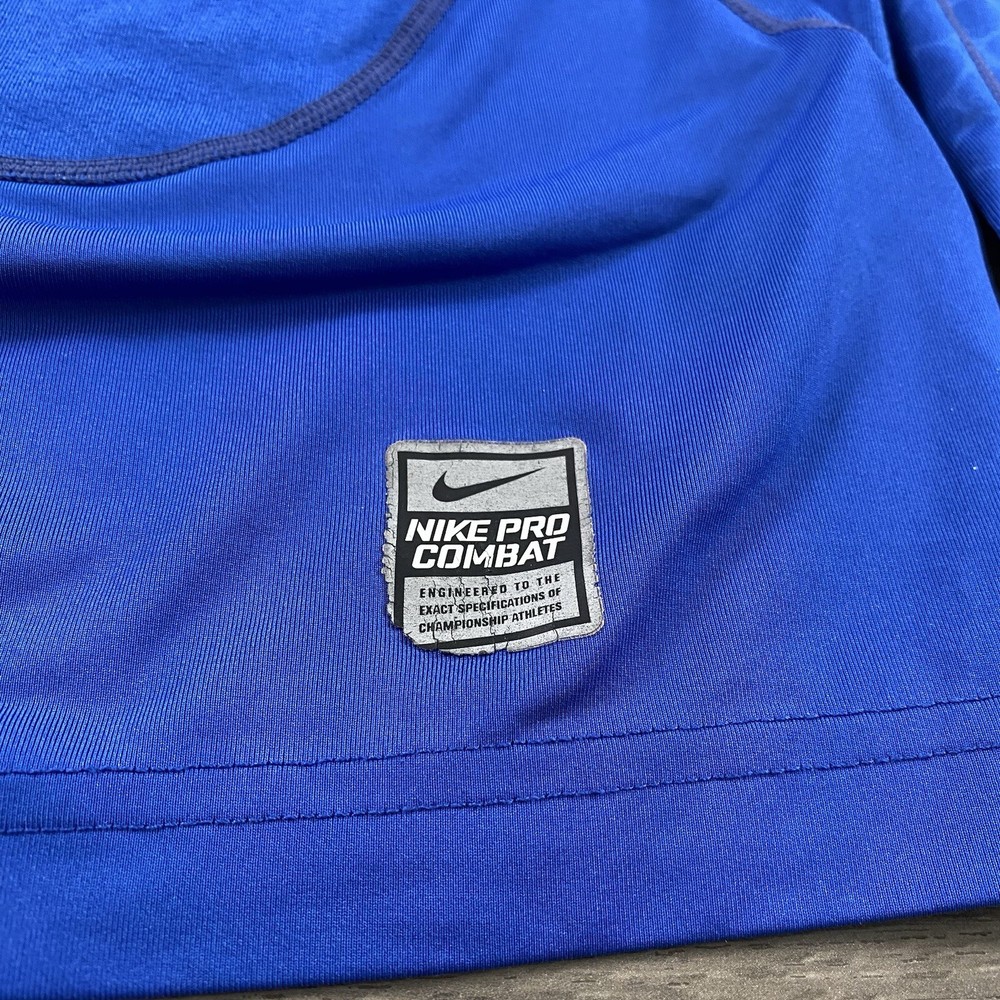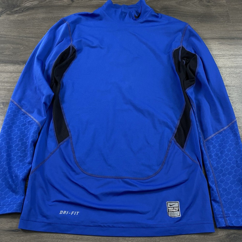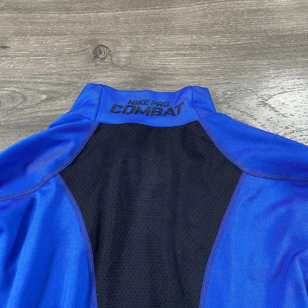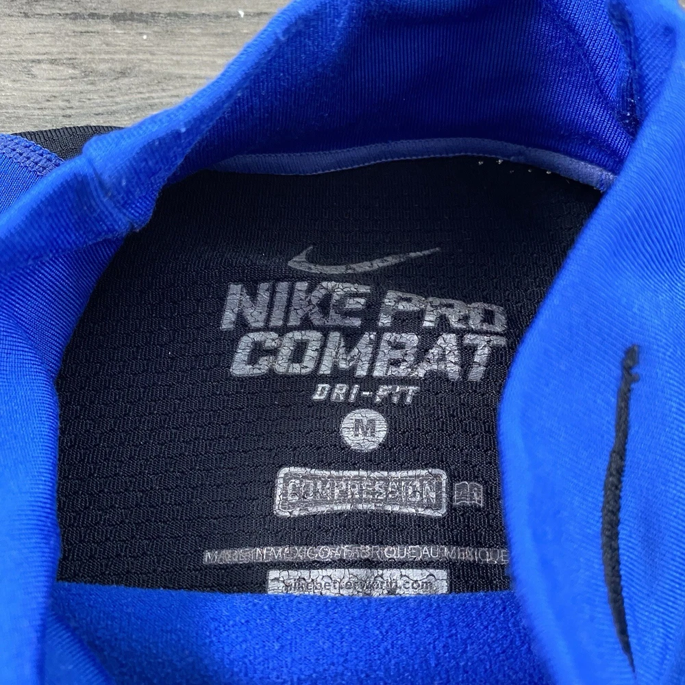 Nike Pro Combat Mock Shirt – Men’s Medium, Blue, Compression Performance, Swoosh Logo, GUC, FAST SHIPPING This Nike Pro Combat Mock Shirt is designed for performance and comfort, featuring a compression fit with a mock neck for added coverage. The blue color and iconic Swoosh logo make it a stylish and functional choice for workouts or layering. Sized at Men’s Medium , it is in good used condition (GUC) with moderate cosmetic flaws —please see photos for details. Key features: Brand: Nike Model: Pro Combat Mock Shirt Size: Men’s Medium Color: Blue Material: Compression performance fabric Style: Long sleeve, mock neck, compression fit Condition: Good Used Condition (GUC), moderate cosmetic flaws (see photos) Ideal for training, layering, or athleisure. If you have any questions or need additional details, feel free to reach out!