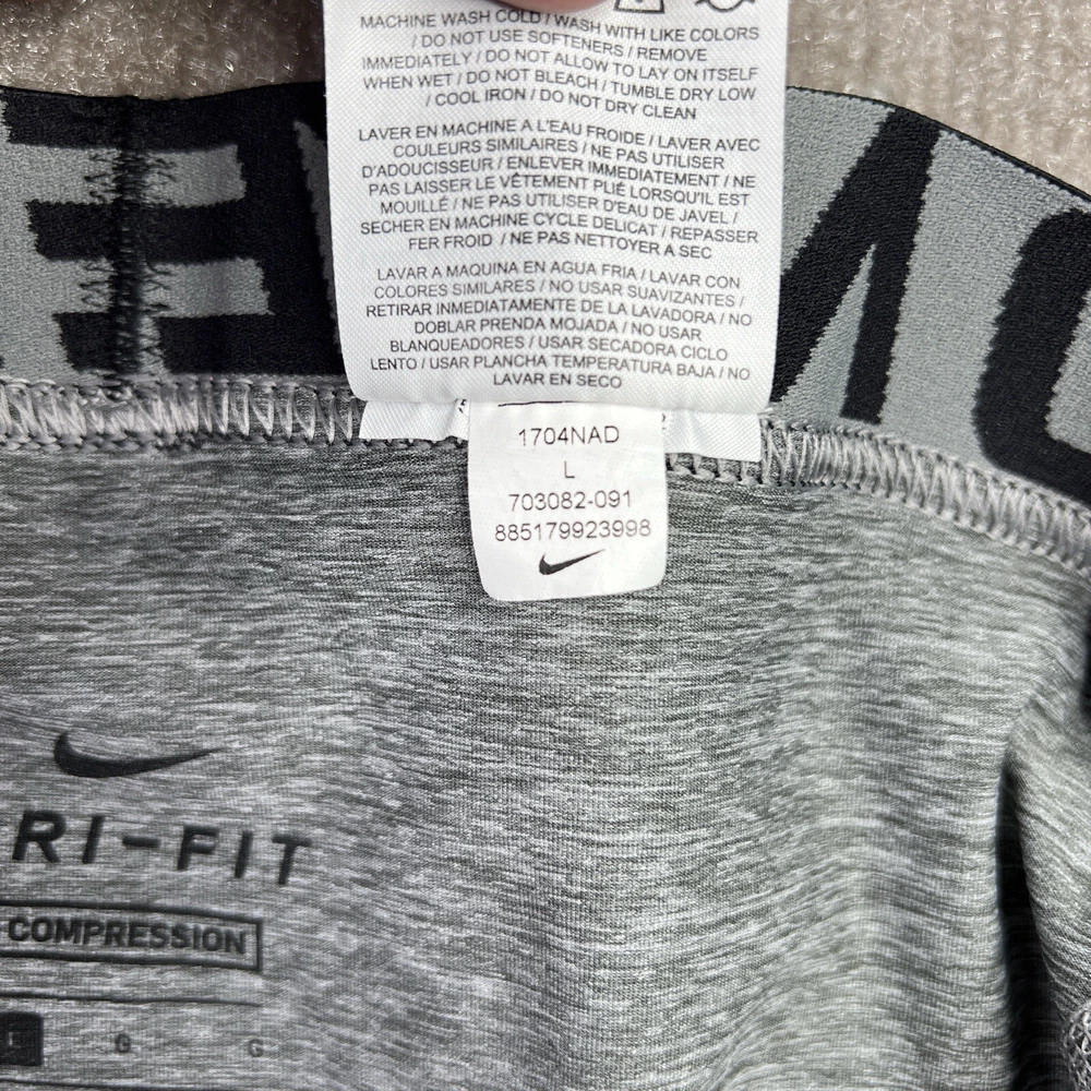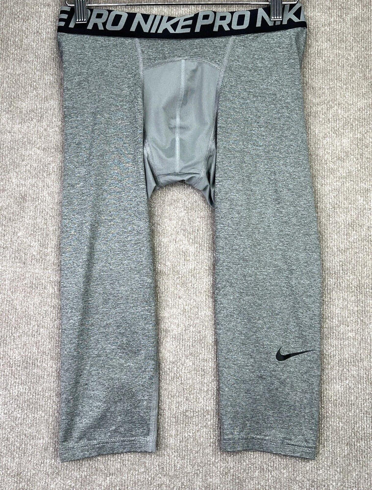 Nike Pro Compression Tights Mens Large Gray Performance Base Layer 703082 Item is in good condition. Free from spots or stains and shows normal wear or better. Item measurements are in the photos and as follows: Waist: 28" Inseam: 18" Shipping and Returns I usually ship within 2 business days so you get your order fast! I accept no hassle returns for items within 30 days, even if you just do not like it. Please feel free to ask any questions you may have. I answer most questions as soon as possible and thanks for looking!