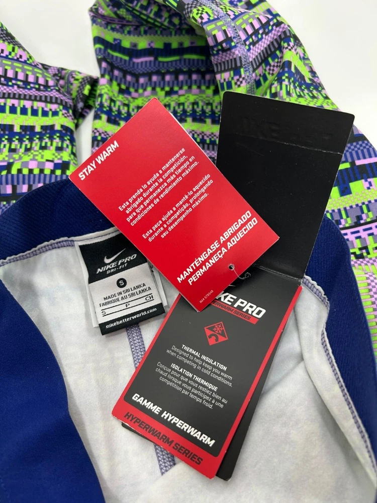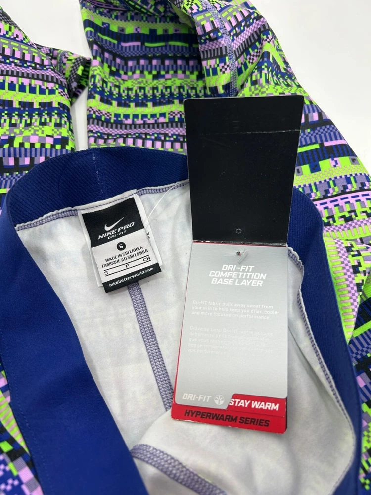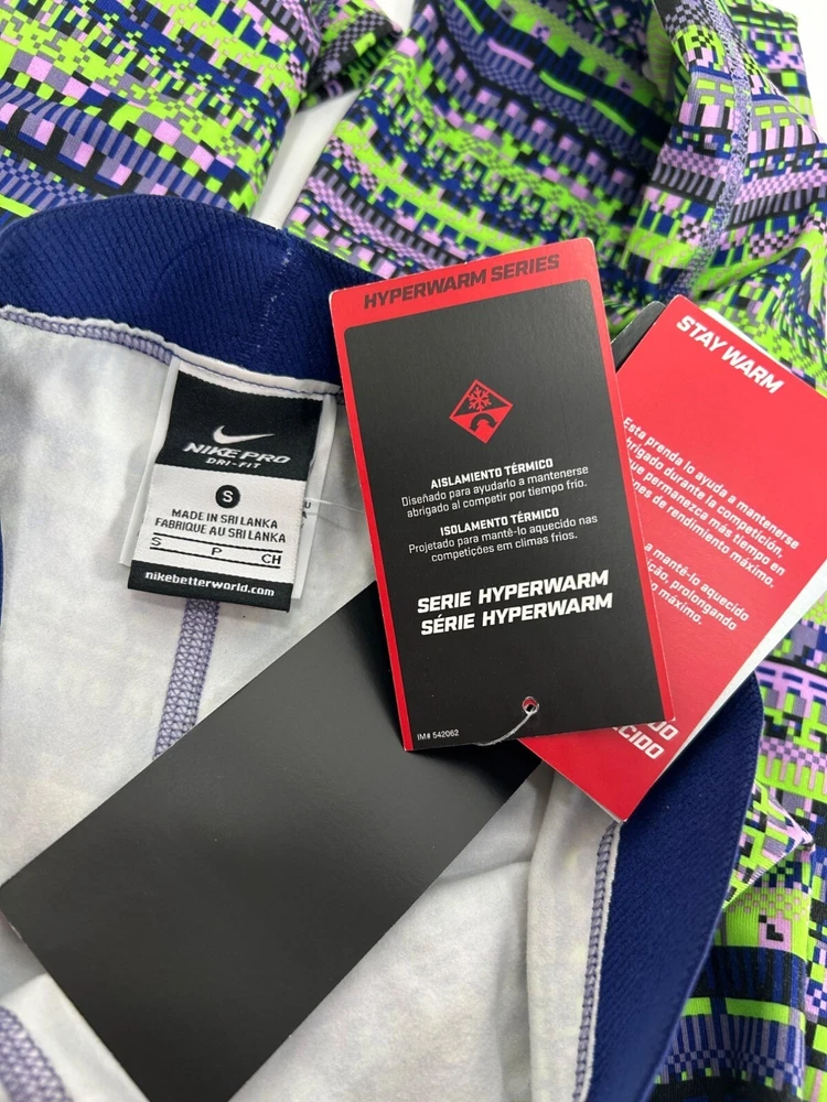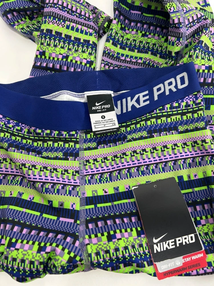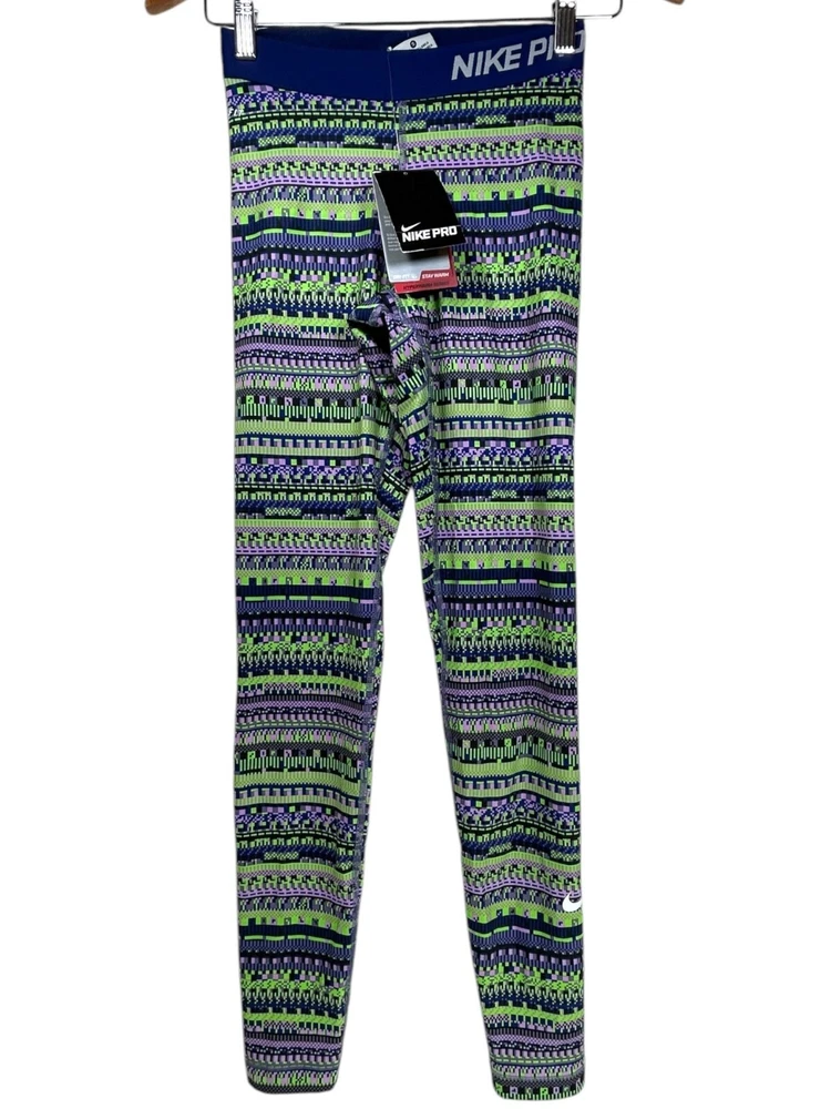 NWT Nike Pro Fleece Lined leggings in multicolor Super unique and comfortable! Aztec multicolor stripe printed Mid rise/mid waisted Elastic waistband No pockets Fleece lined Fitted/slimming allover Full length fit Great as a statement piece in your fit! Made with polyester/spandex Made in Sri Lanka Waist: 11.5” across Inseam/ 23” around unstretched Inseam: 26.5” Rise length: 10.5” Full length: 37” #nike #nikeleggings #printedleggings #fleecelined #nikewomens #womensnike #fleecelinedleggings #athleticleggings #nikepro #nikeproleggings #aztceprint #geometric #geoprint #geostripeprint