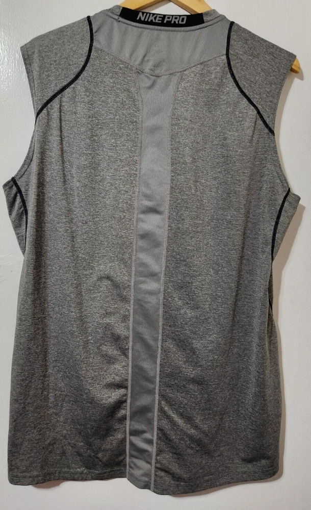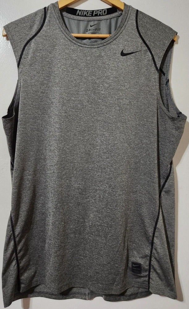 Fabric Wash: Medium Season: Fall, Spring, Summer Size: L Performance/Activity: Basketball, Beach, Bodybuilding, CrossFit, Cross Training, Football, Gym & Training, Running & Jogging, Track & Field, Walking, Weightlifting Occasion: Activewear Compression Level: Mild Size Type: Regular Character: Grey Wolf Neckline: Crew Neck Type: Tank Closure: Pullover Theme: Sports Department: Men Fabric Type: Jersey Fit: Athletic Accents: Logo Garment Care: Machine Washable Model: Nike Dri-Fit Style: Basic Personalize: No Brand: Nike Vintage: No Product Line: Nike Pro Country/Region of Manufacture: Mexico Sleeve Length: Sleeveless Features: Breathable, Easy Care, Lightweight, Moisture Wicking, Non-Iron, Quick Dry, Stretch Color: Gray Pattern: Solid Material: Polyester, Spandex Handmade: No
