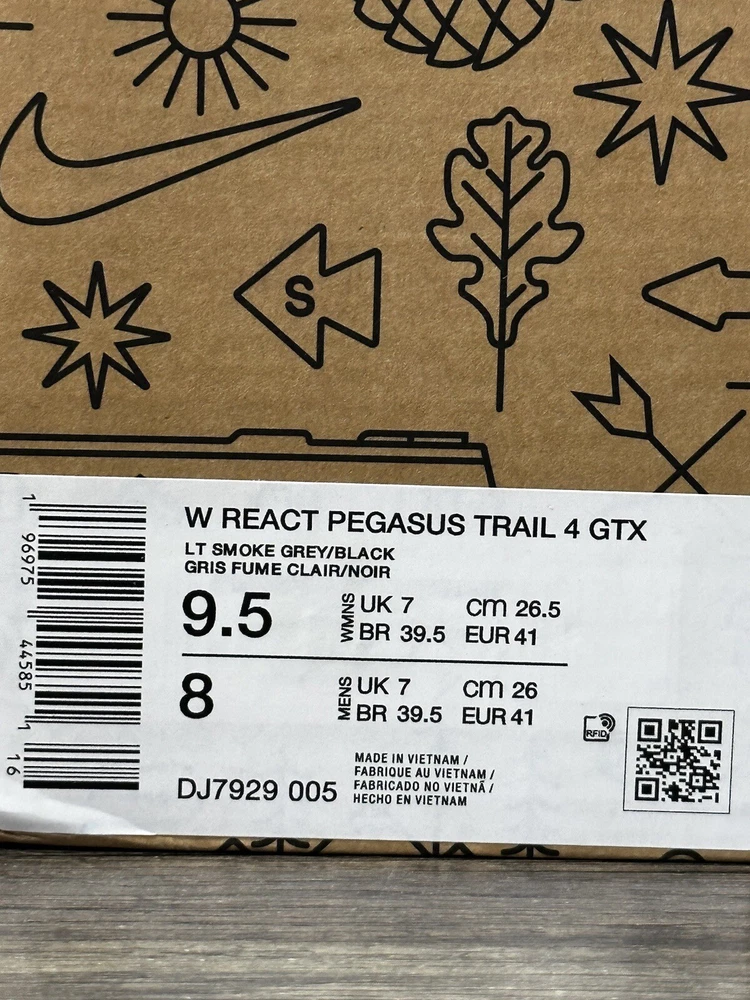 Thank you for considering our store! We appreciate your business and support! Item: Nike React Pegasus Trail 4 Trail GTX ‘Grey’ Size: Womens Size 9.5 Box may have some minor shelf wear or shipping wear such as small tears , dent , etc. Shoe is new i and unused. “New with box without lid" Item number: Dj7929-005 You must do so from your end within one hour of the order. Communications between buyer & seller are blocked by Ebay from the moment you purchase or at the acceptance of an offer. 100% authentic NO LID Shipped to you fast via USPS Priority Mail We consider all reasonable offers! With that said, we invite you to “watch" our items to receive special offers sent directly to you! Thank you for visiting